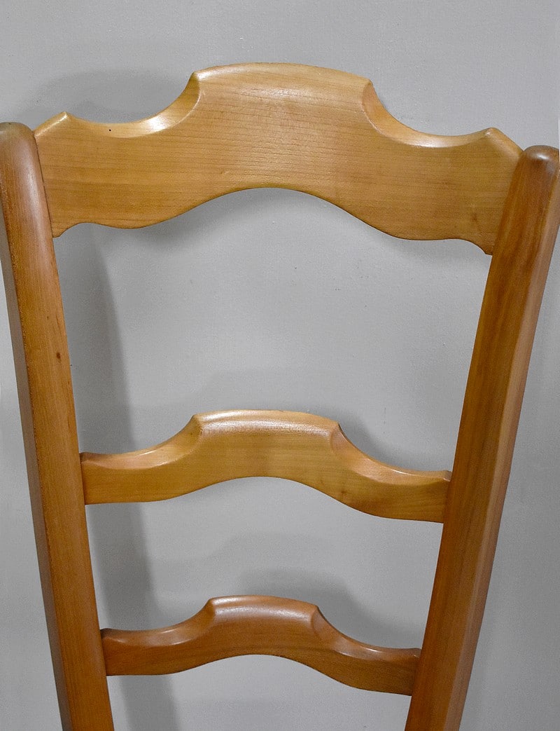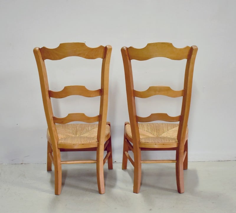 Paire de chaises basses à langer à dossier haut en merisier.