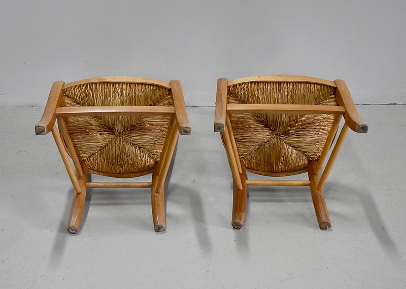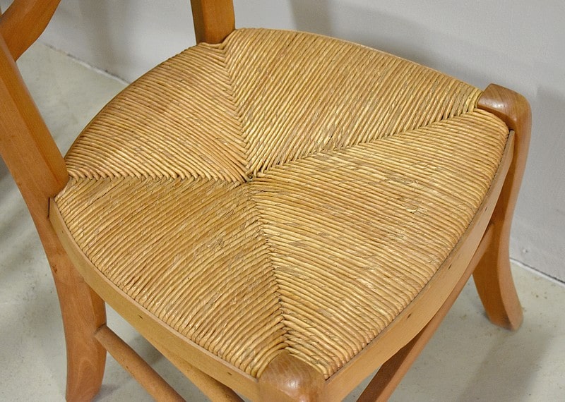 Dossiers à découpes et assise en paillage.
