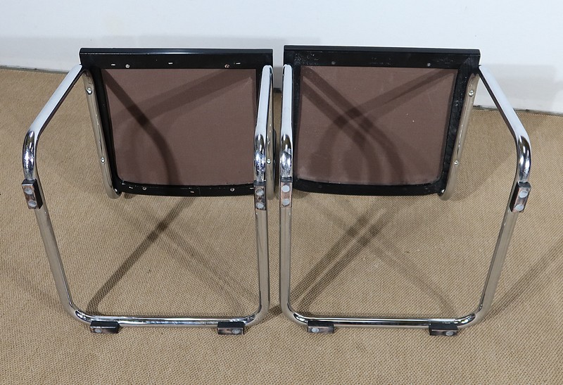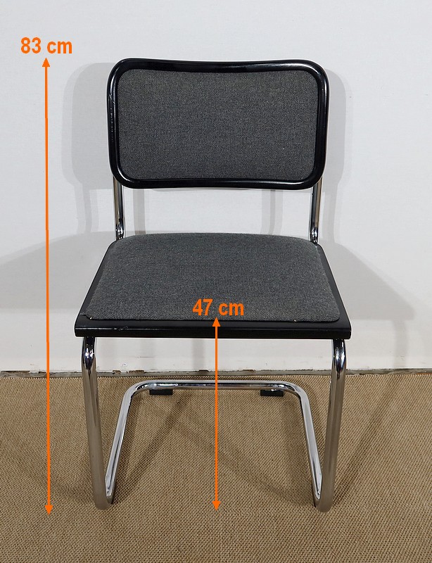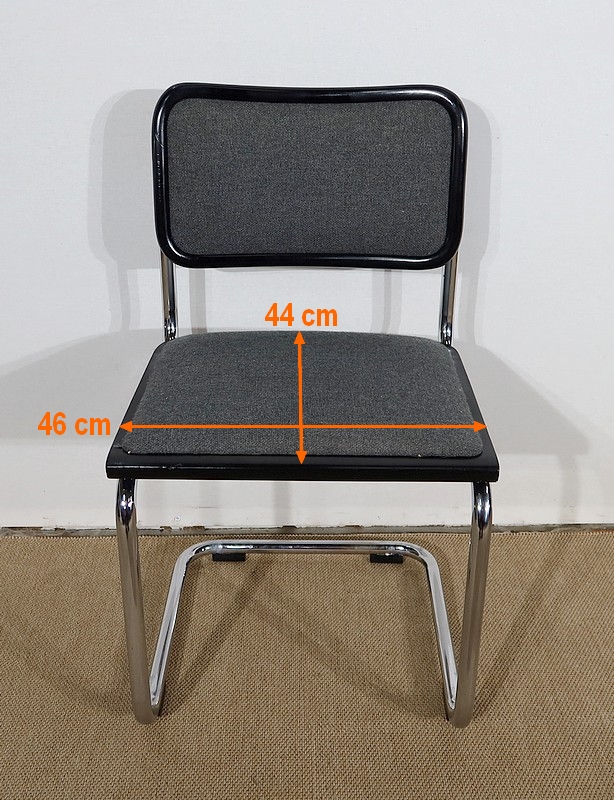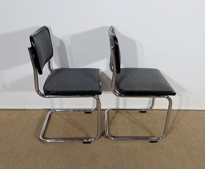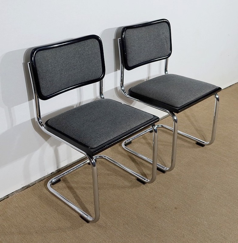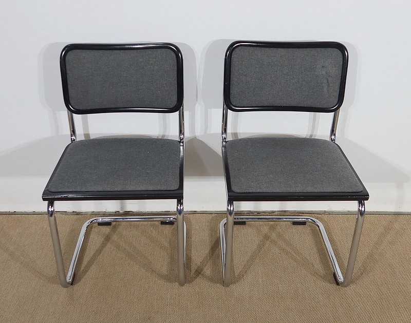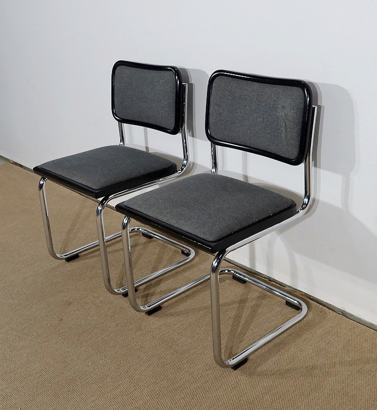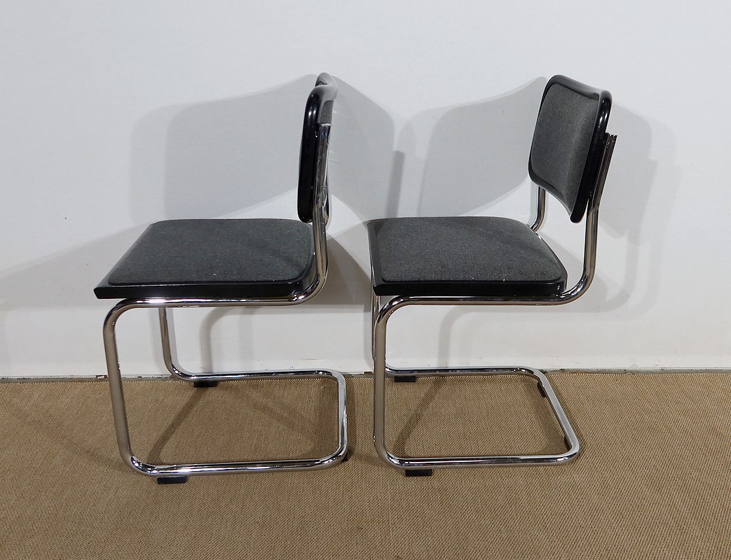 Belle paire de fauteuil modèle Cesca B32, dessiné par Marcel Breuer (1902-1981) dans les années 30 et réédité par la marque en 1991. Elles possèdent une numérotation et une signature gravée « Made in Italy » sur le bord noir en dessous de chaque siège.
