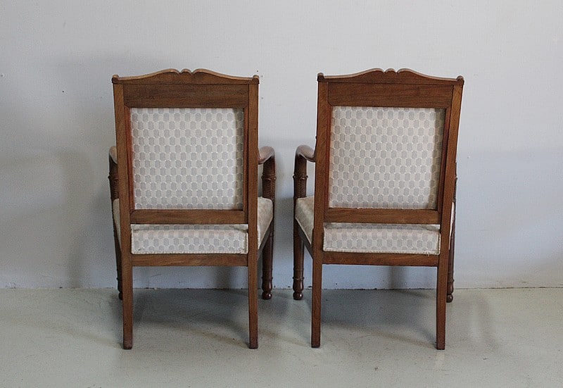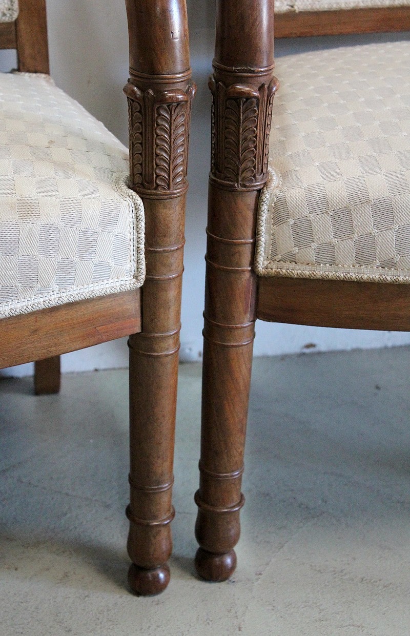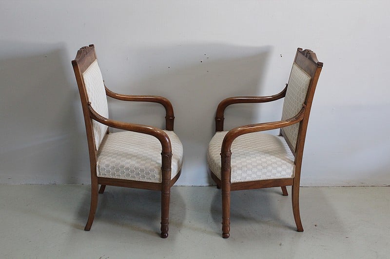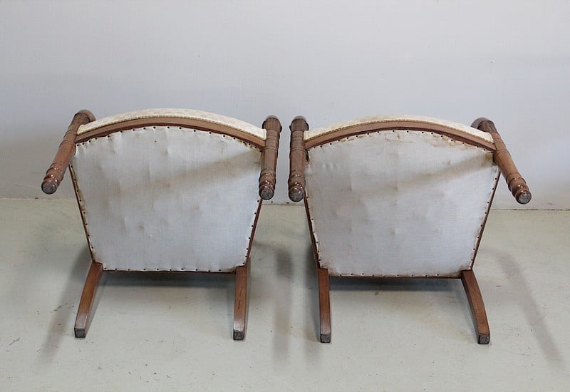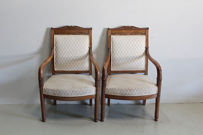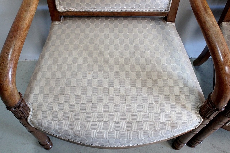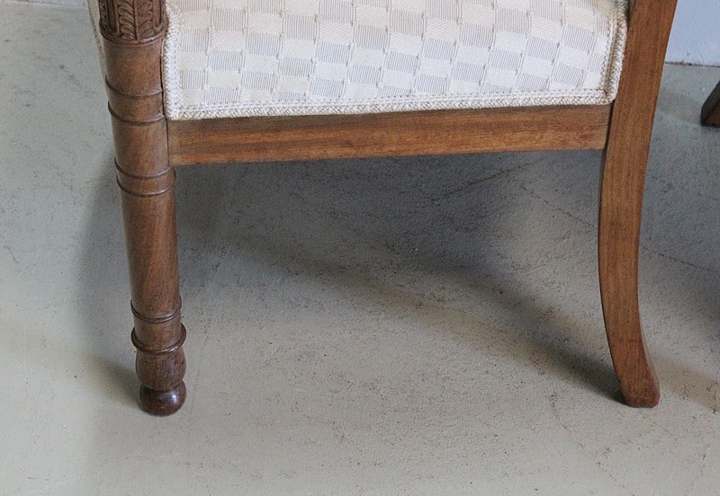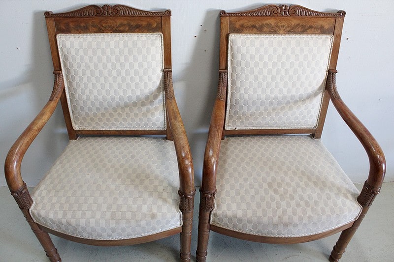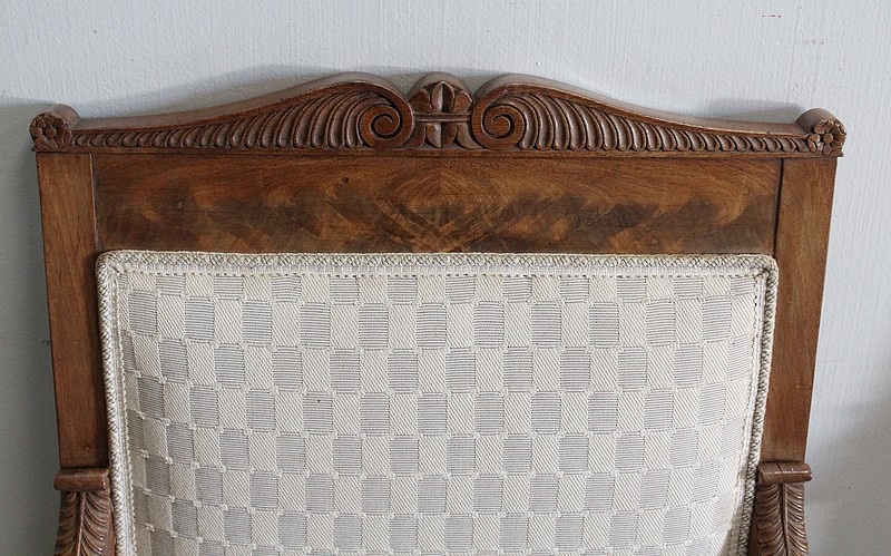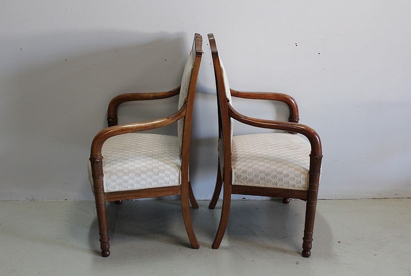 Paire de fauteuils 1er Empire en Acajou massif et placage de Ronce d’Acajou.