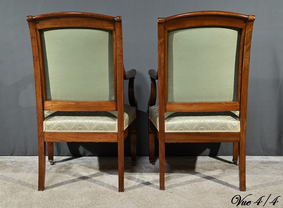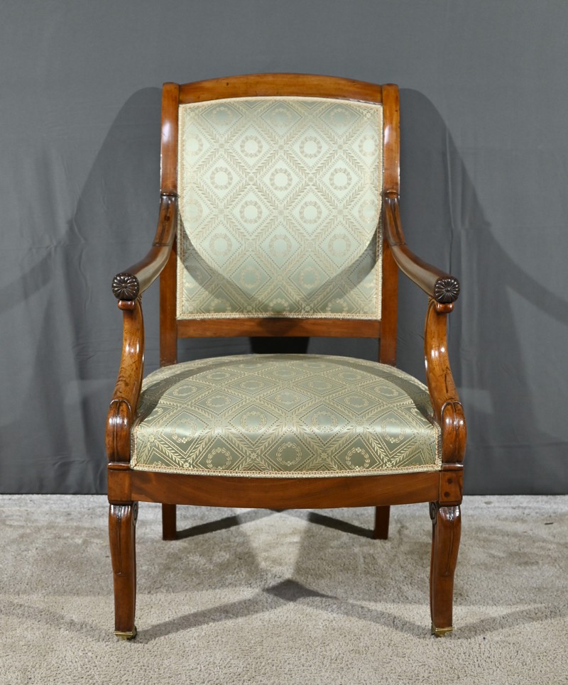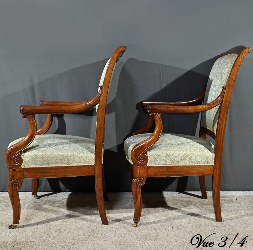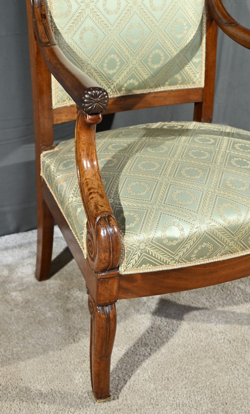 Ces fauteuils d’époque en acajou, se distinguent par des lignes douces et complexes propres au style restauration.