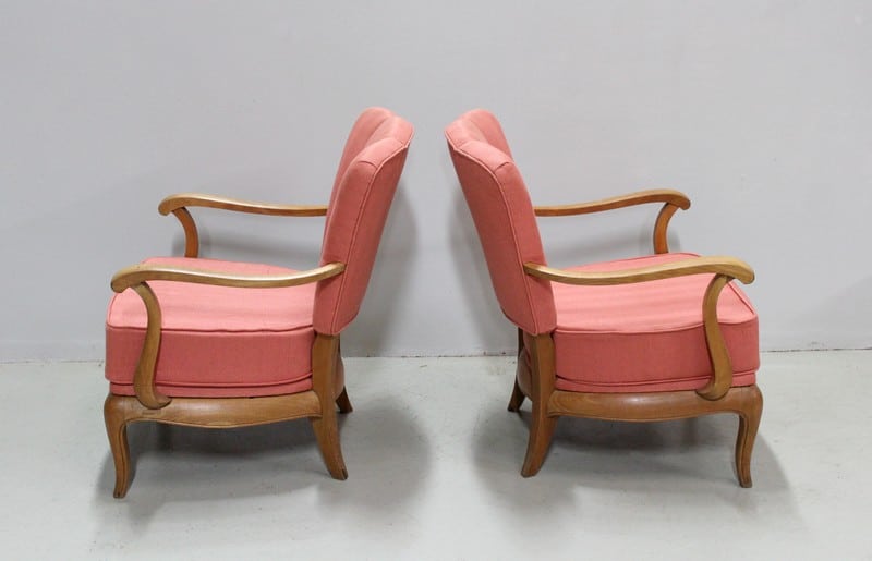 Paire de petits fauteuils d’esprit Bridge Chippendale en Hêtre de teinte naturelle claire.