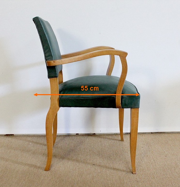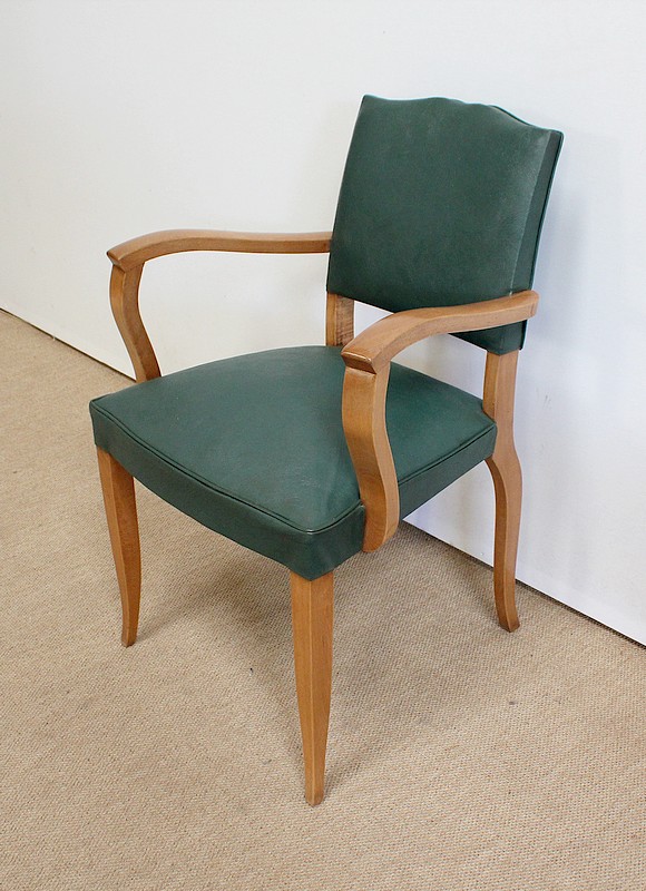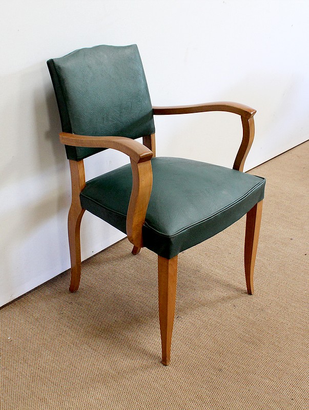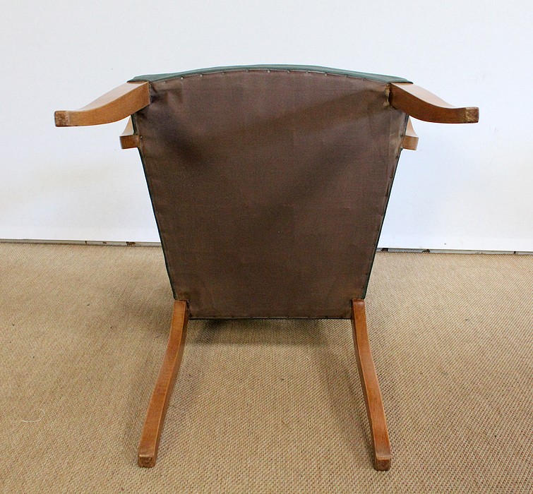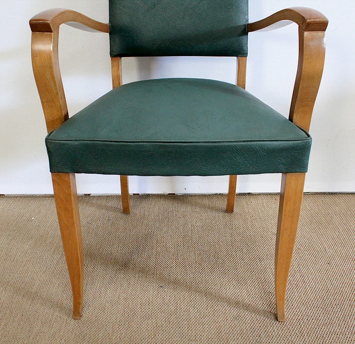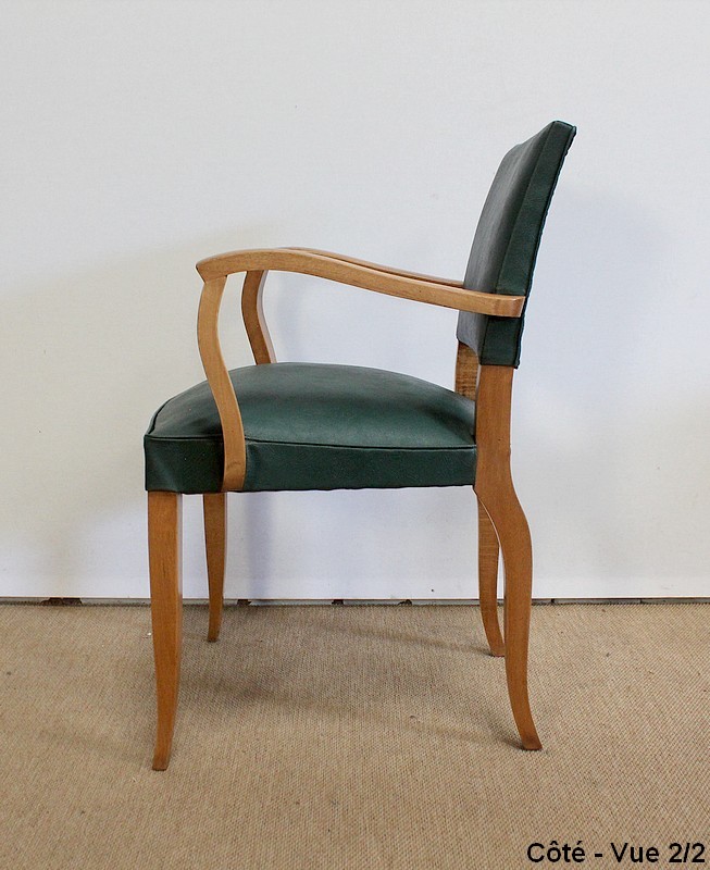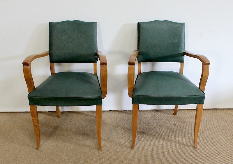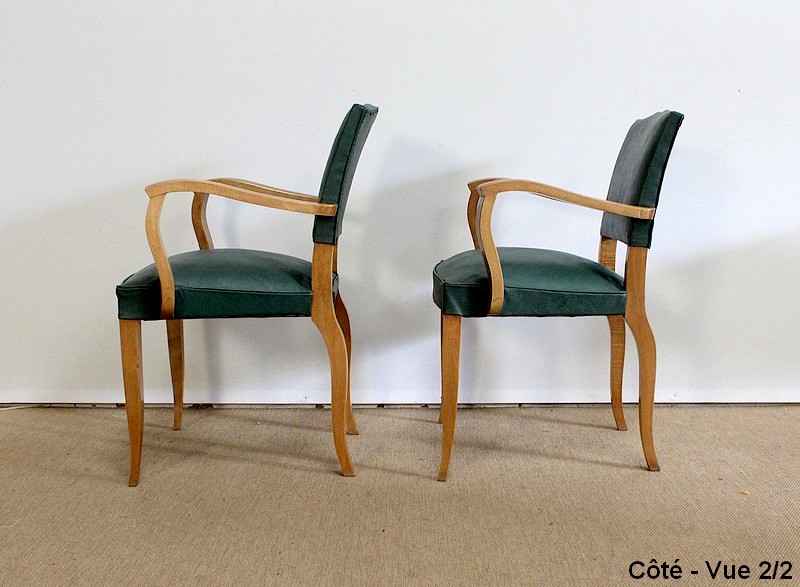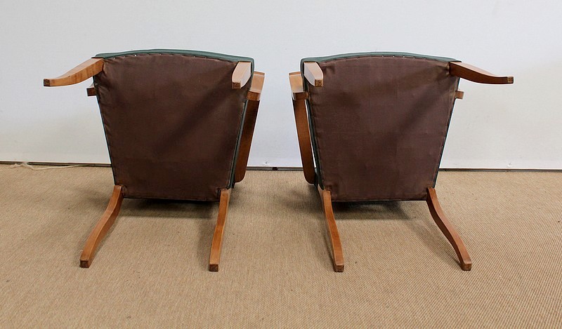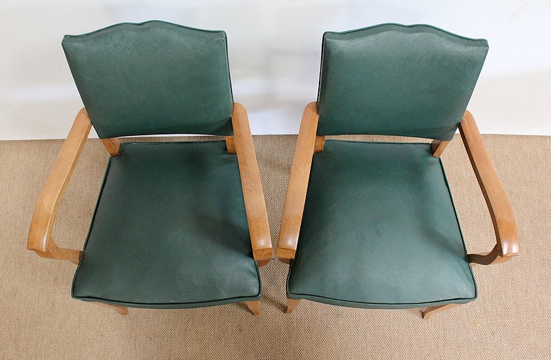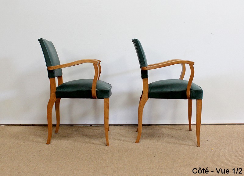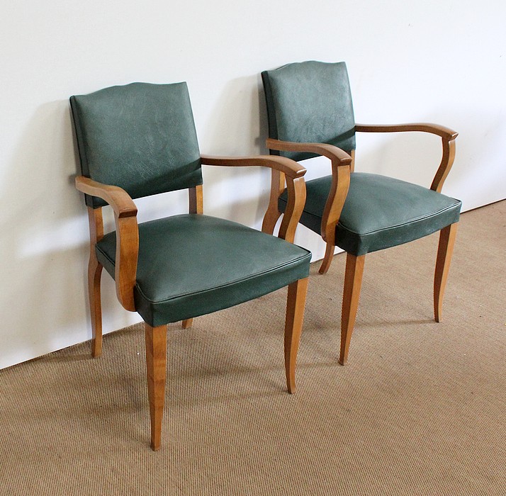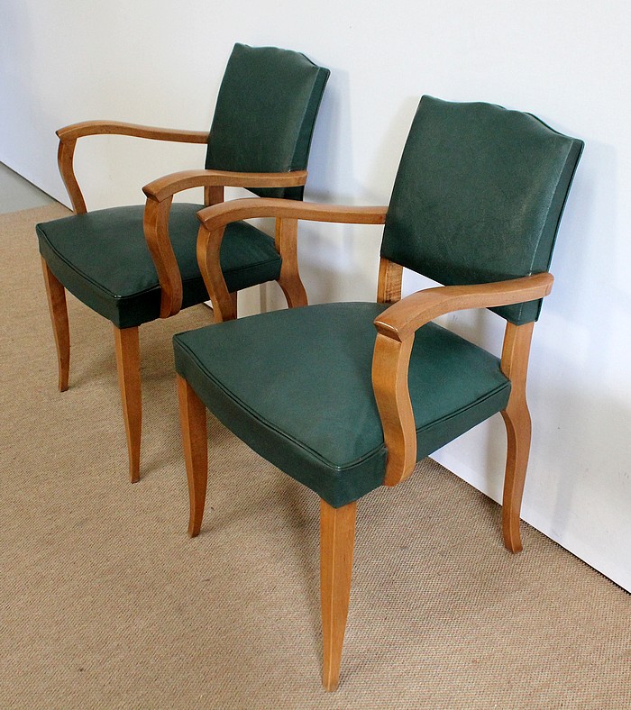 Paire de Fauteuils Bridge en Hêtre Massif conçus dans les années 1950.