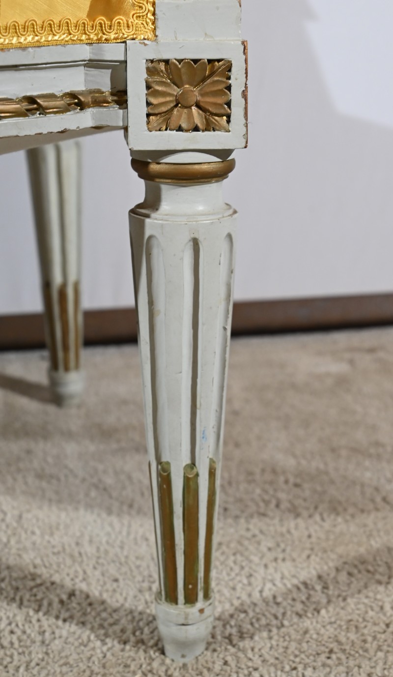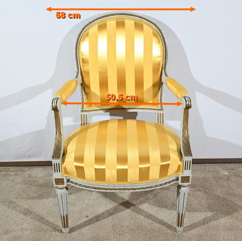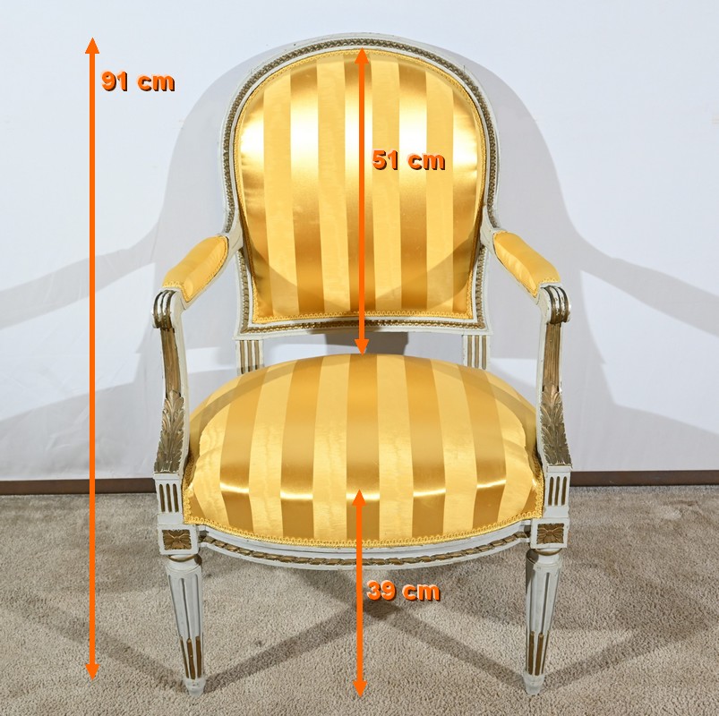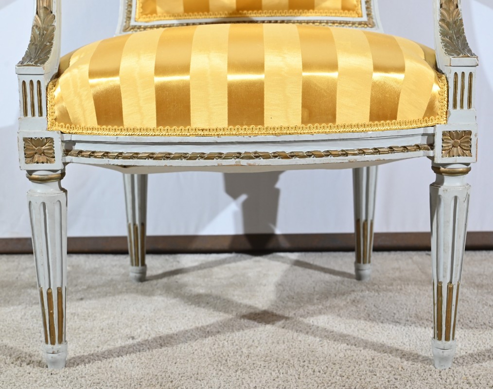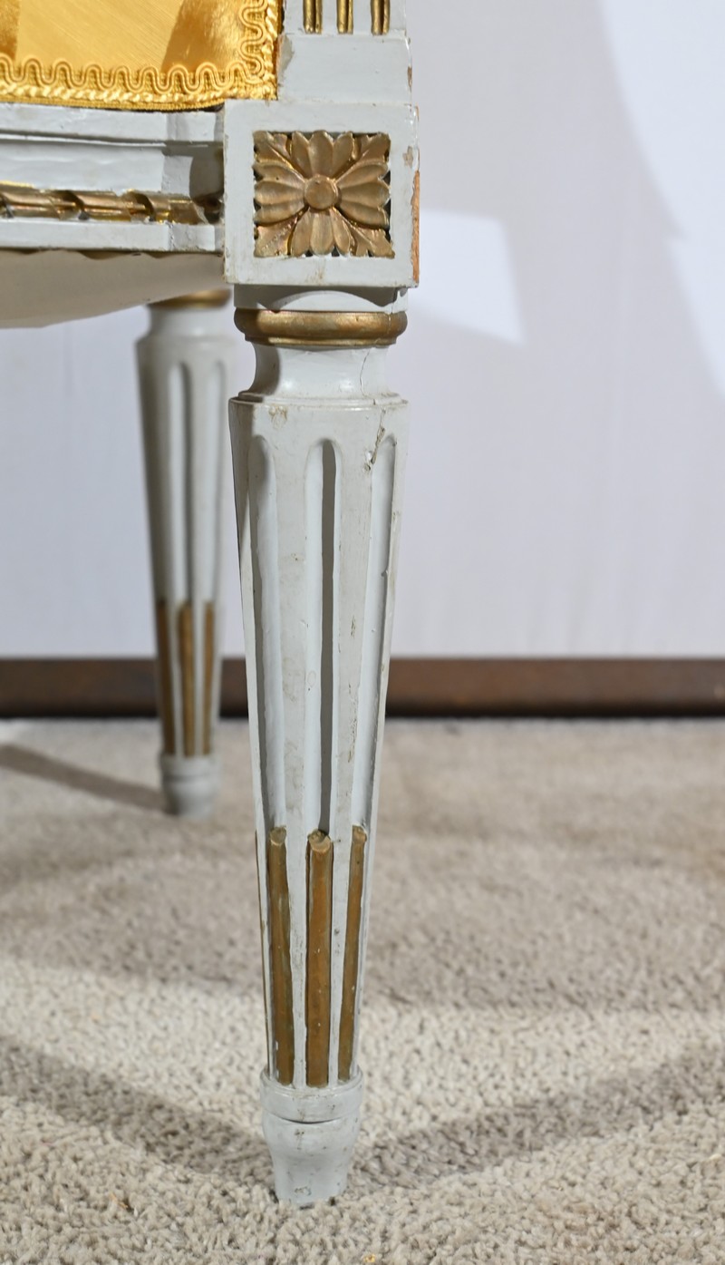 Élégante paire de fauteuils cabriolet, en bois réchampi, reposant sur des pieds tournés.