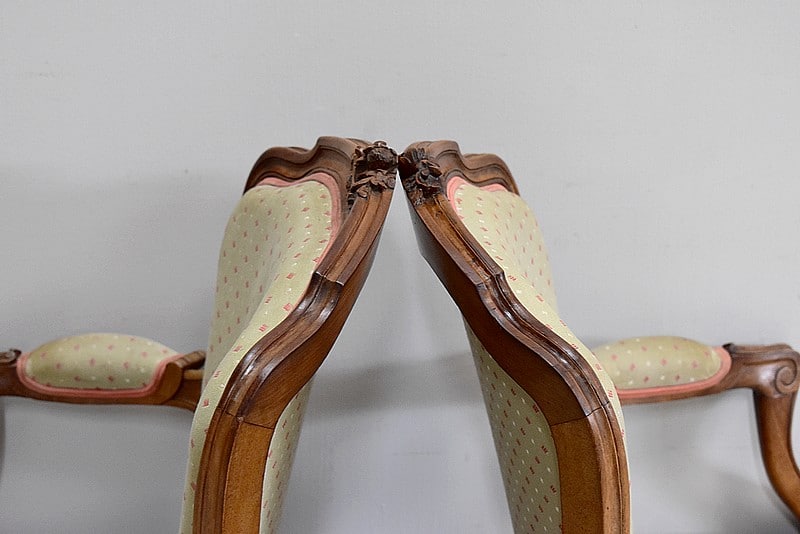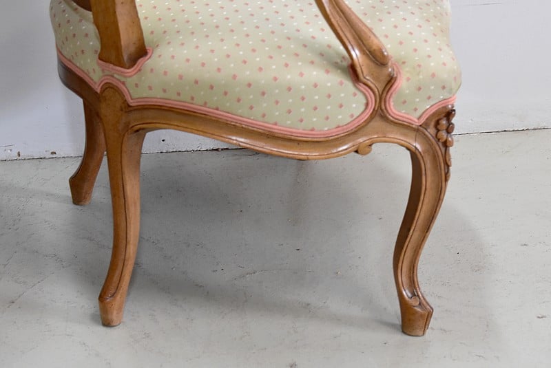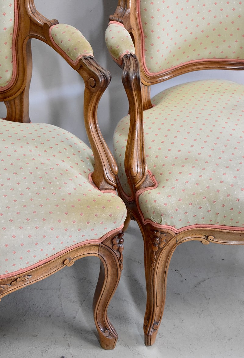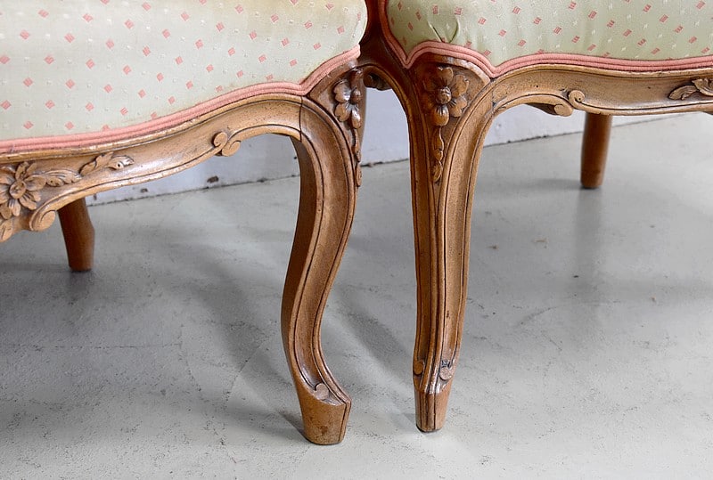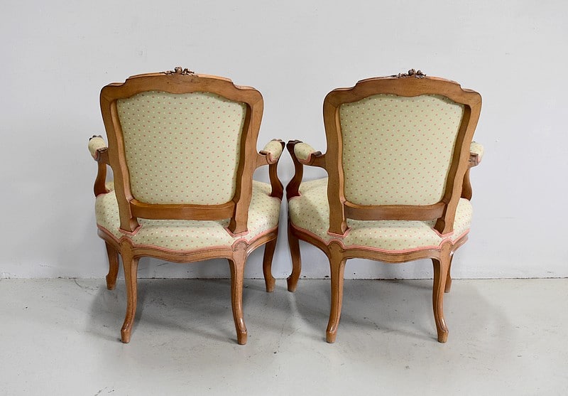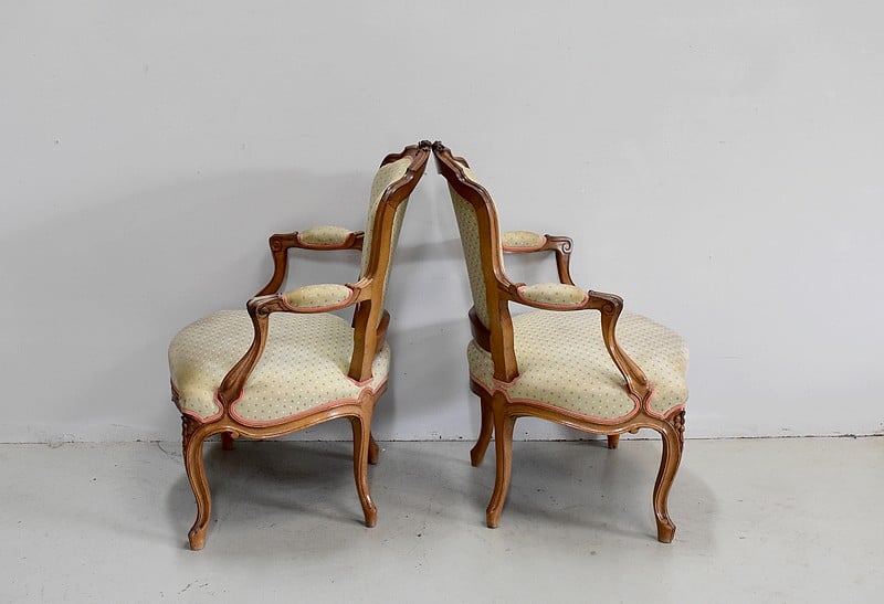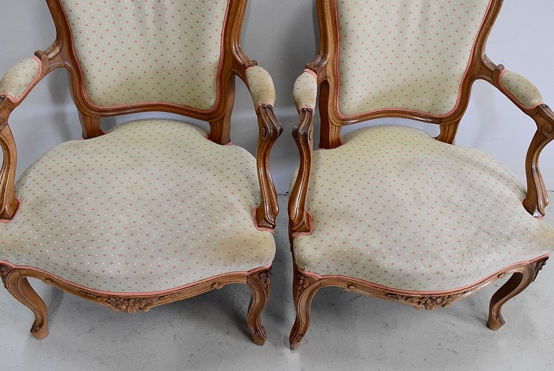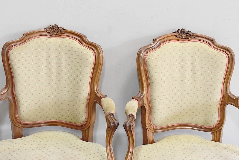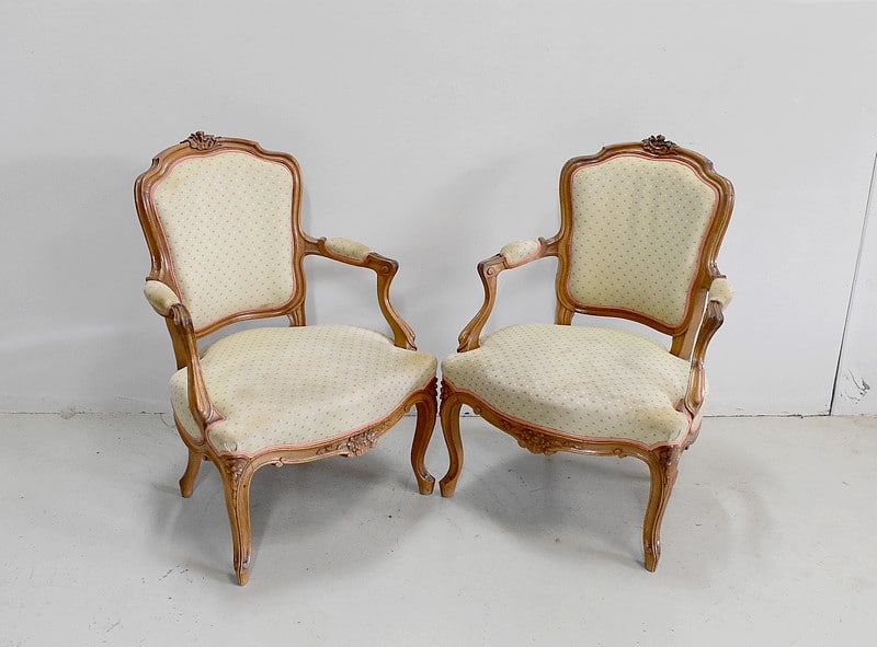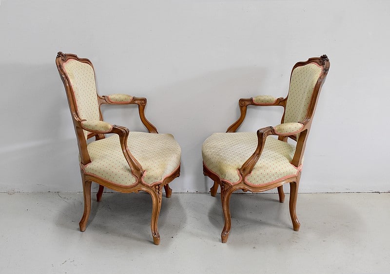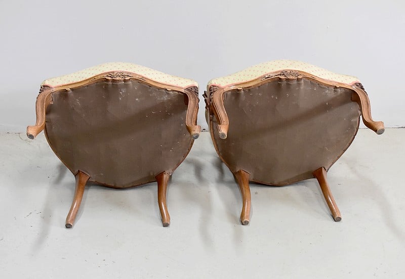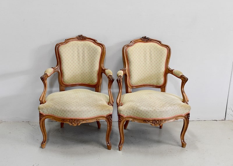 Paire de fauteuils Cabriolets de style Louis XV en Noyer blond.
