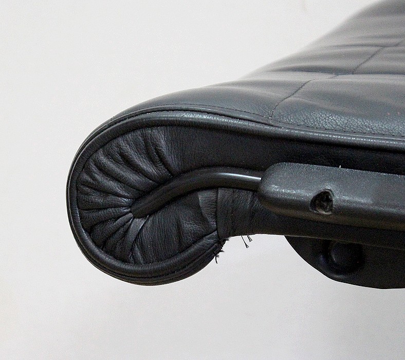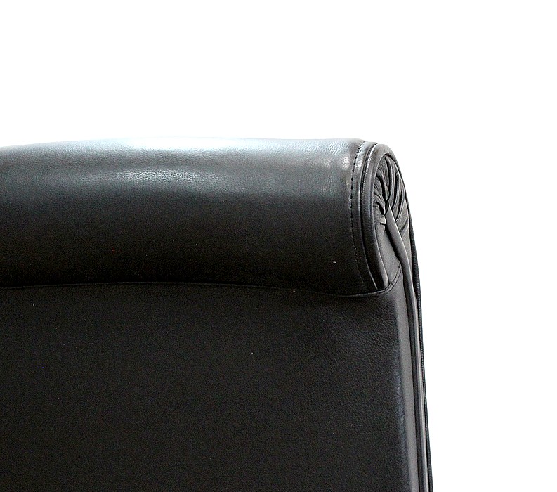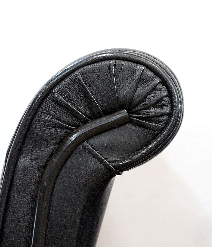 Ces mobiliers reconnus pour leur design intemporel se revêtissent d’un cuir noir à coutures, sur leur dos et leur assise.