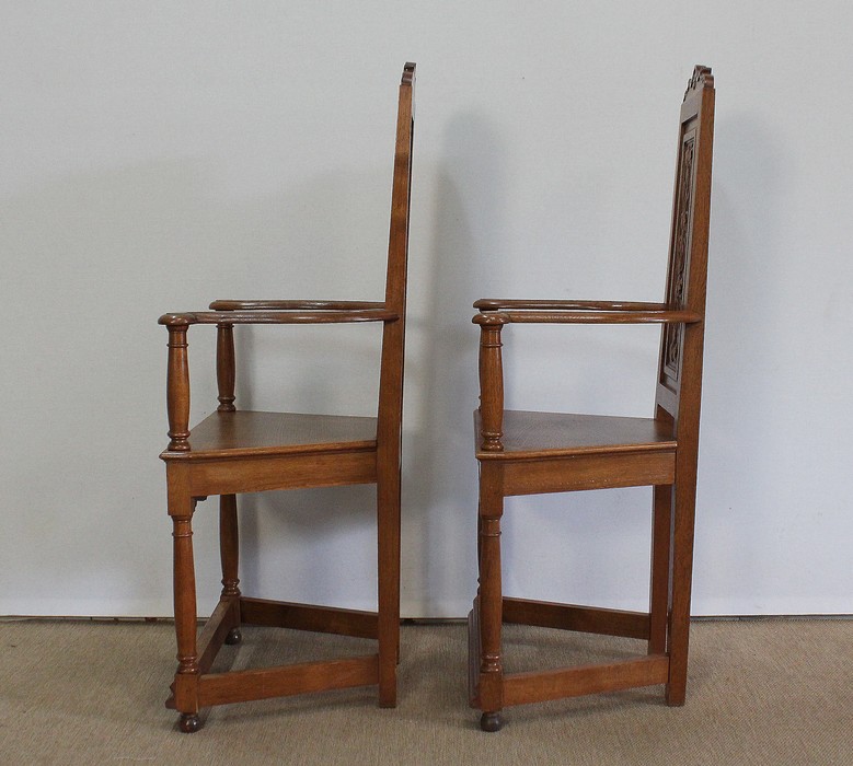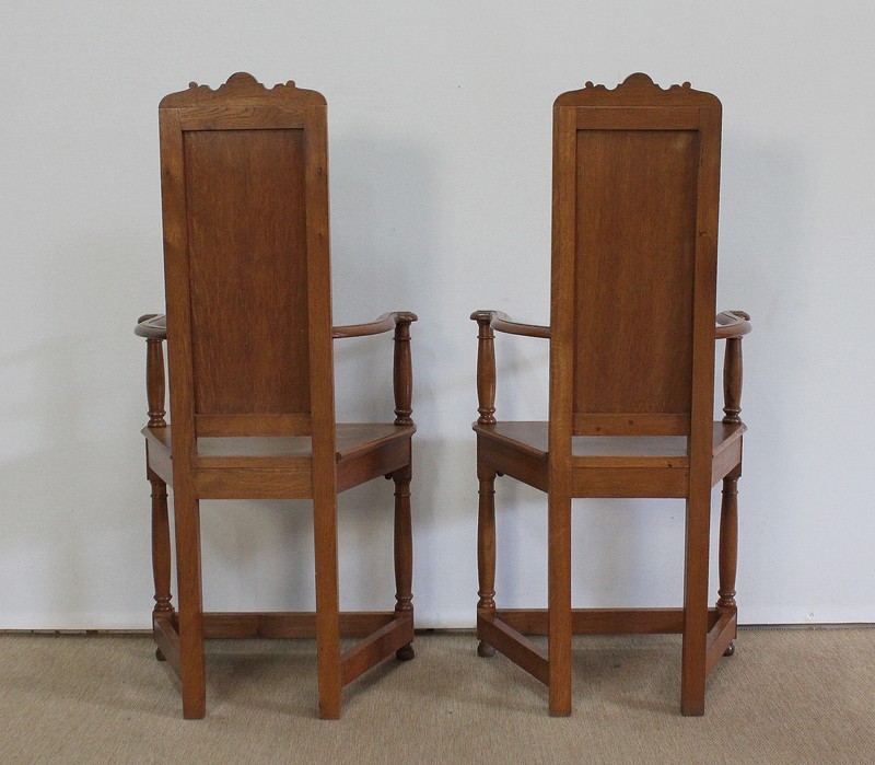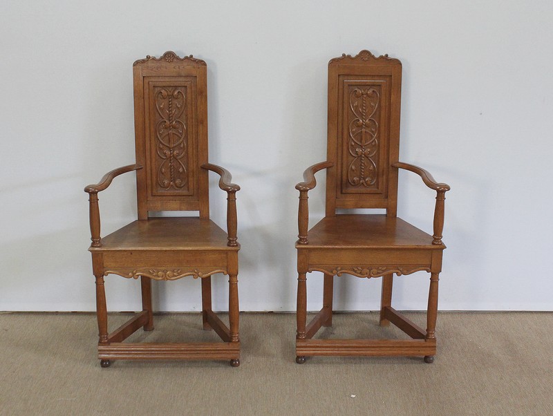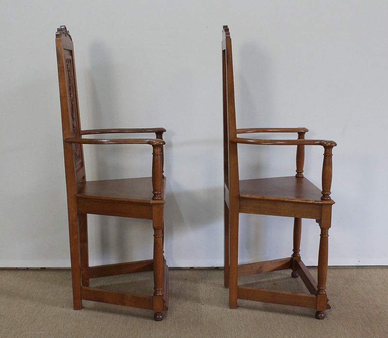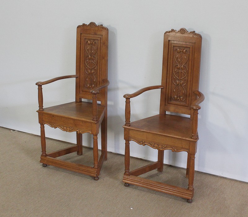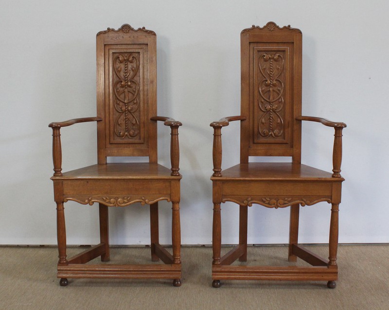 Paire de Fauteuils dits ‘Caquetoires’, en Chêne Blond, style Renaissance – Fin XIXe