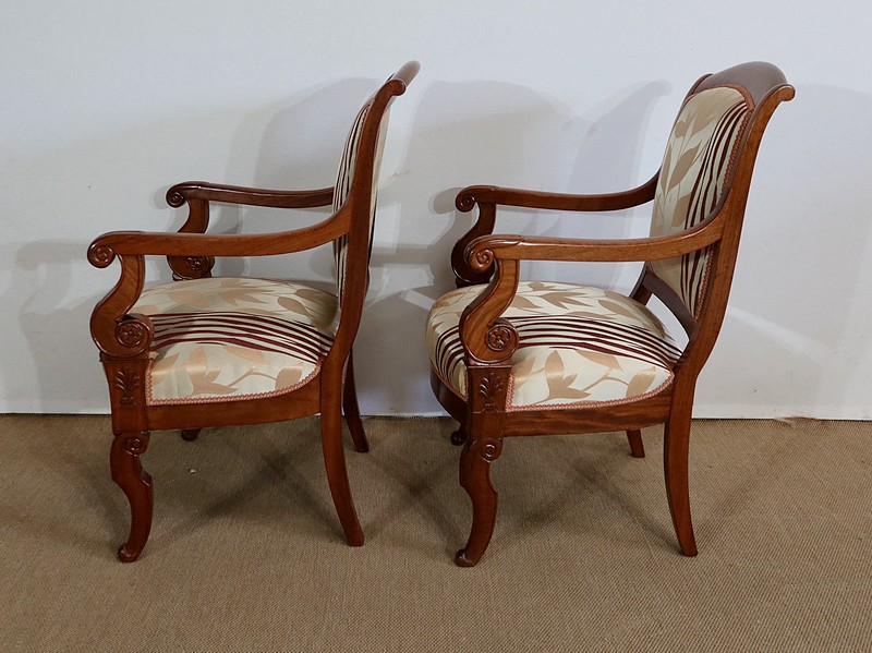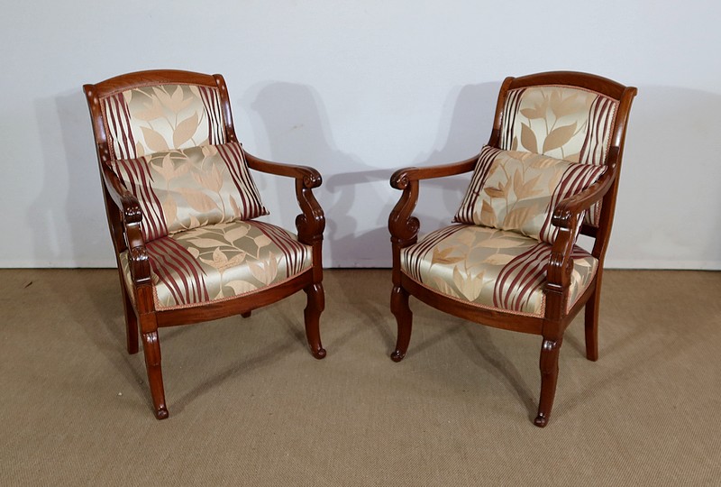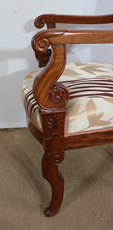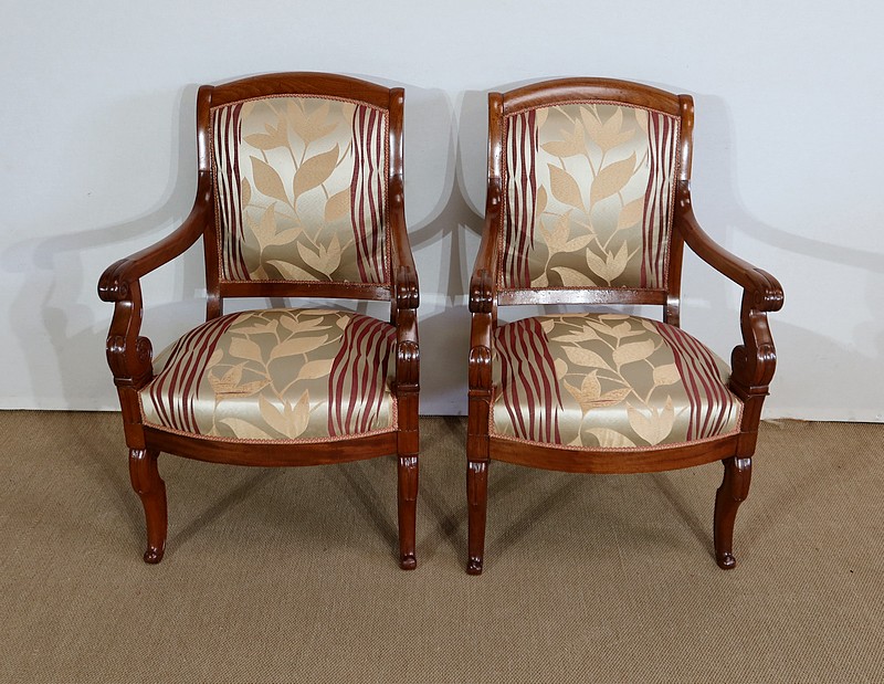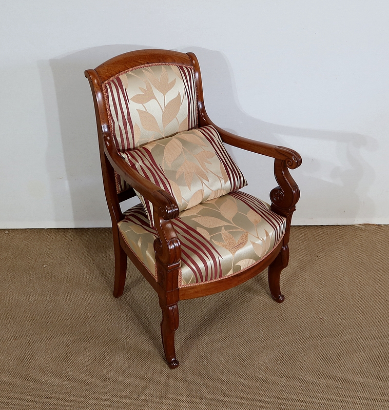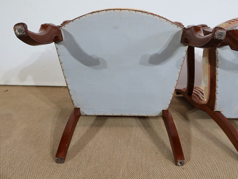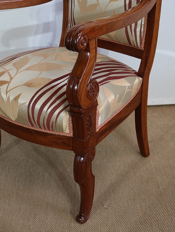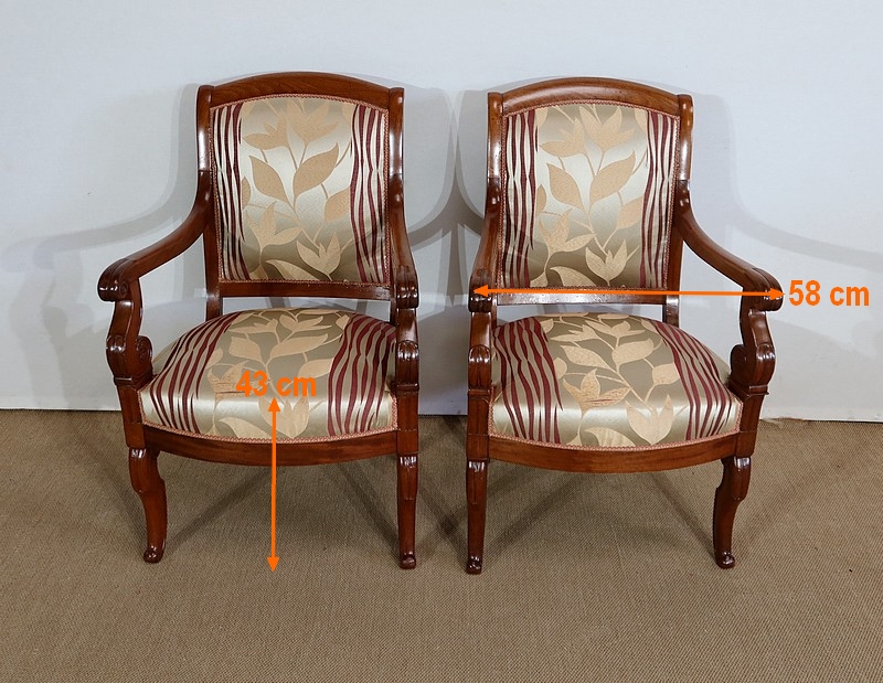 Élégants fauteuils en Acajou de Cuba massif de petites dimensions reposant sur des pieds avant à jarret et des pieds arrière sabre.