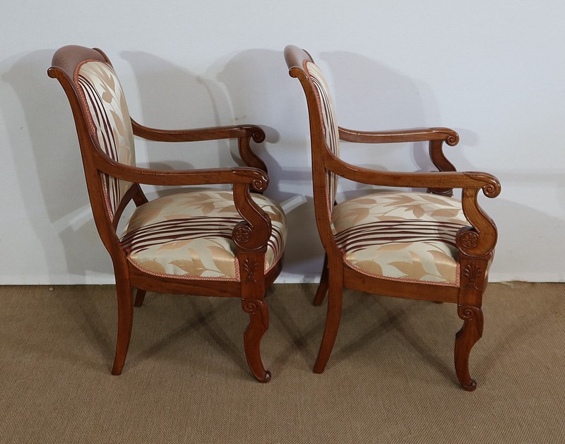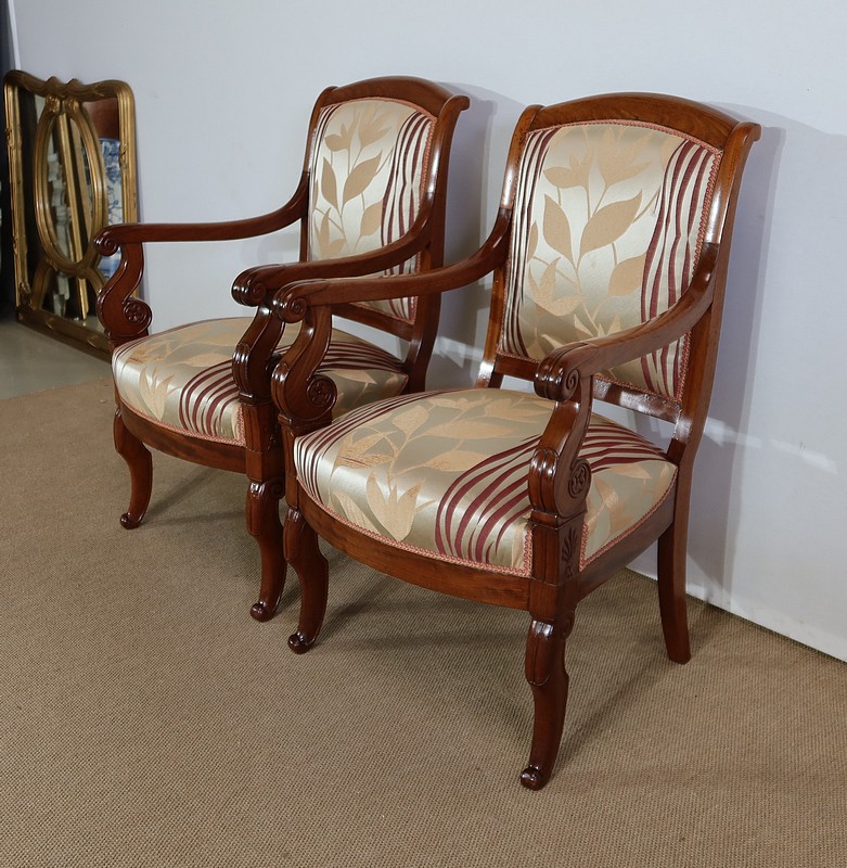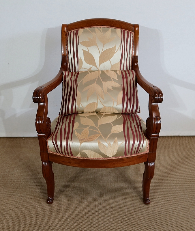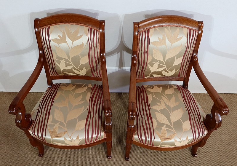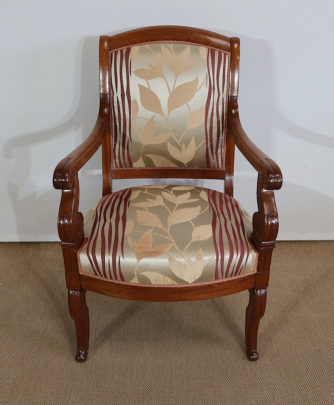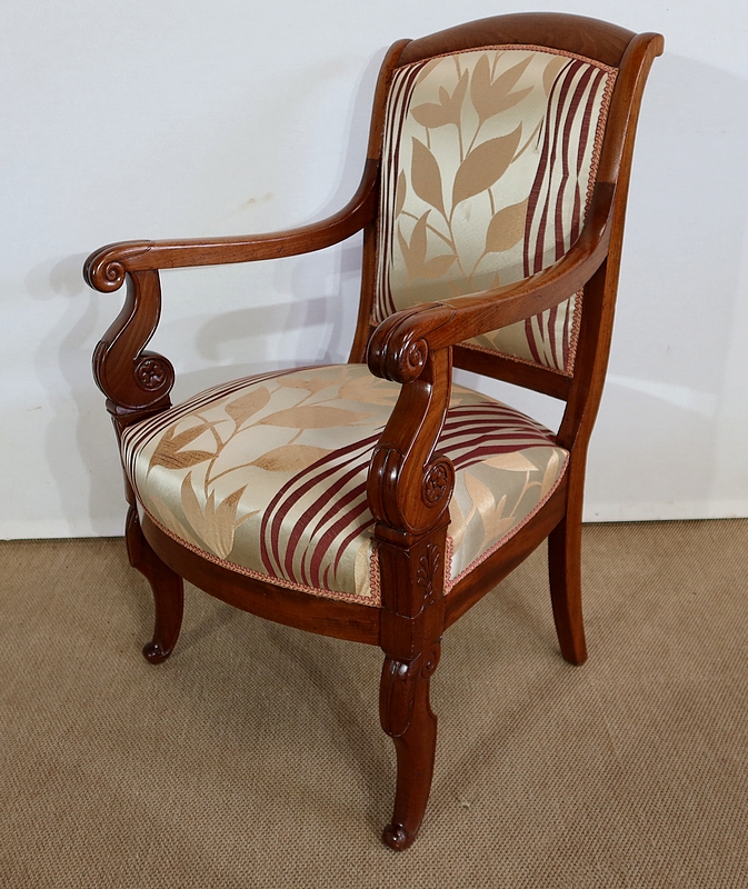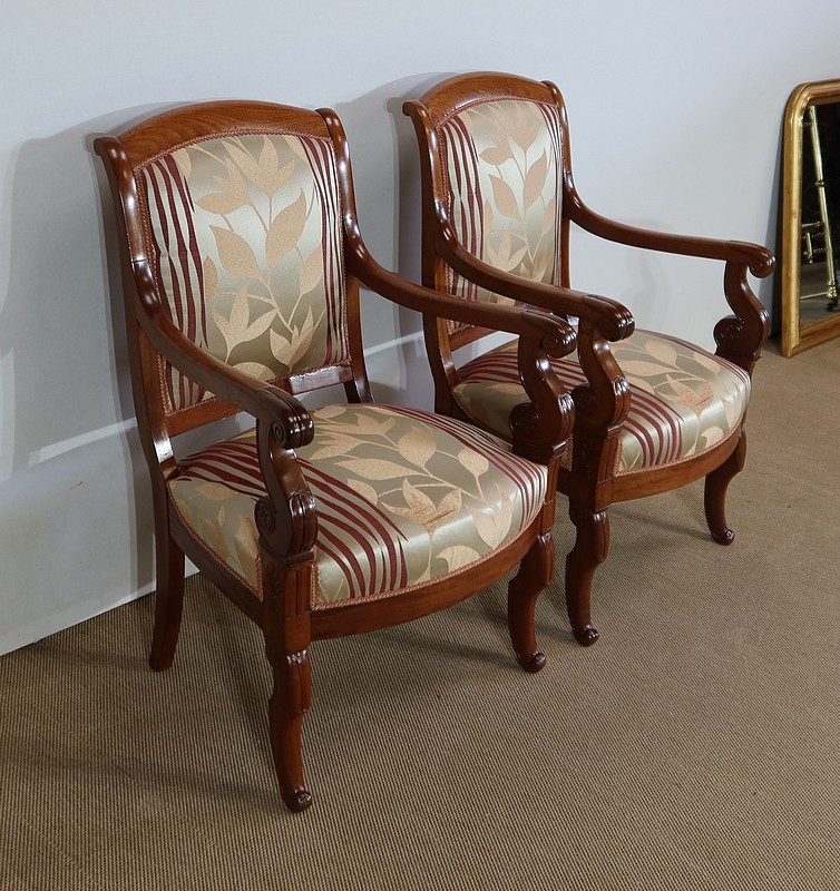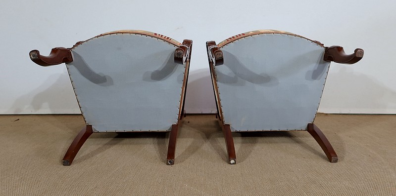 Élégants fauteuils en Acajou de Cuba massif de petites dimensions reposant sur des pieds avant à jarret et des pieds arrière sabre.