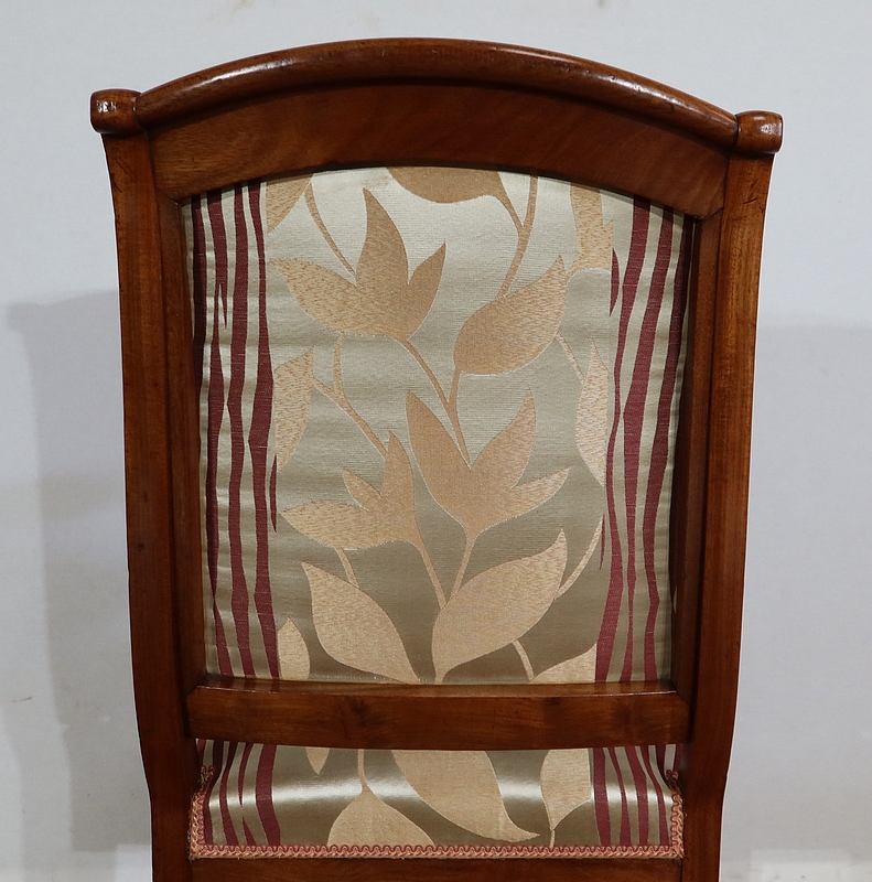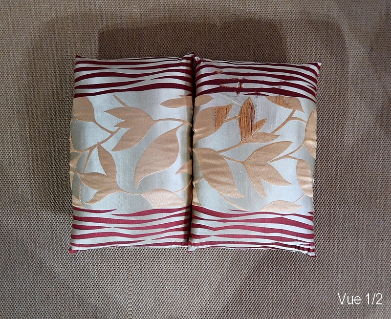 Les Assises en excellent état ont été refaites à l’ancienne avec sangles, ressorts et crin. Elles sont recouvertes d’un tissu fin à fond légèrement argenté accompagné de feuillages et de motifs stylisés, entouré de liserés et de galons.