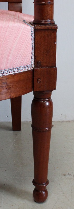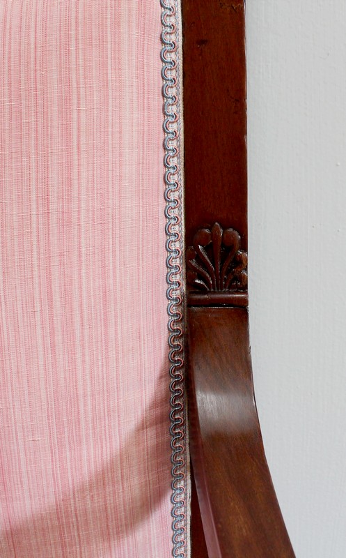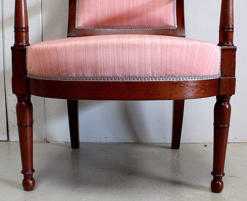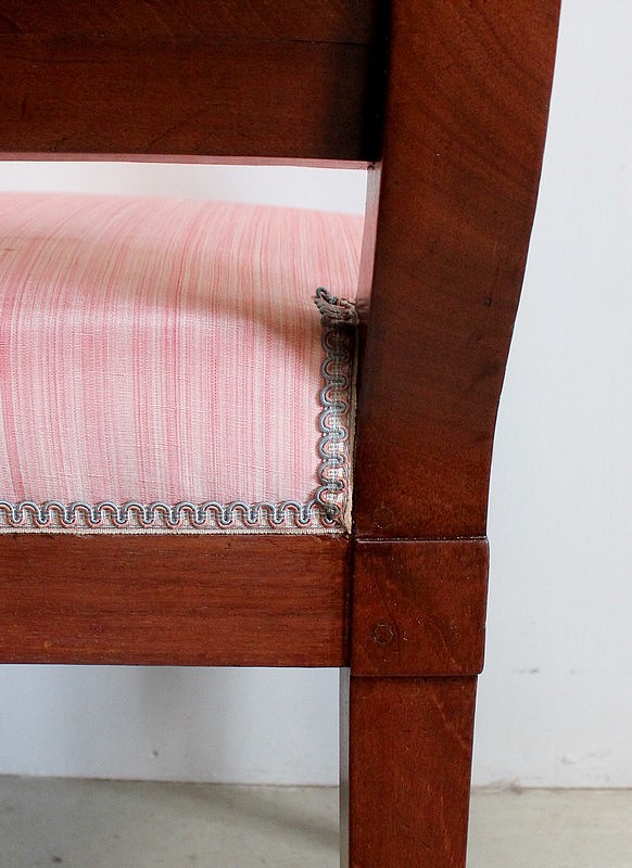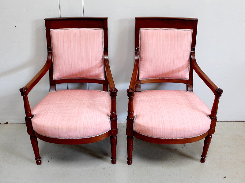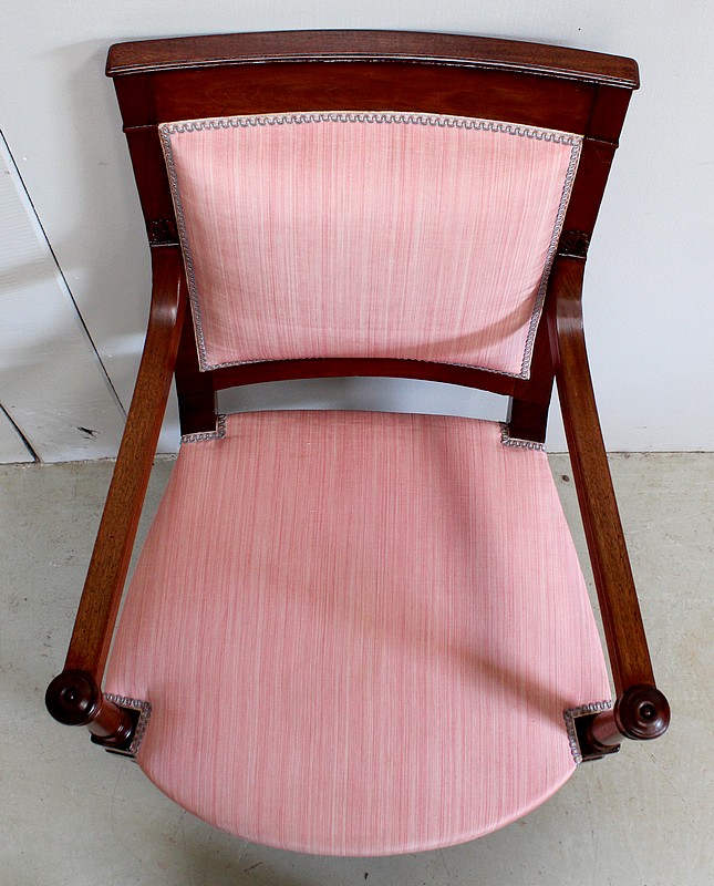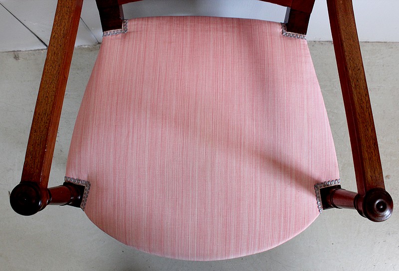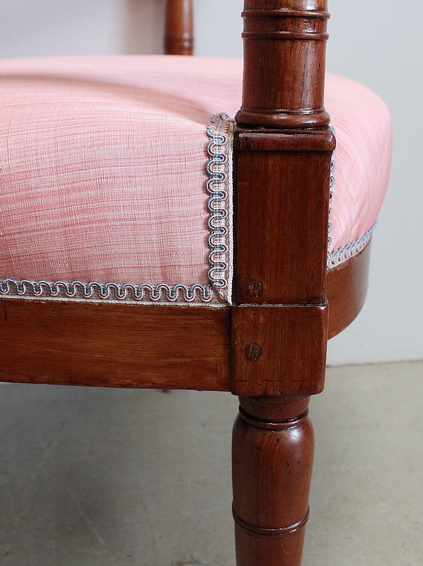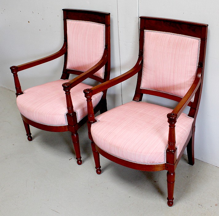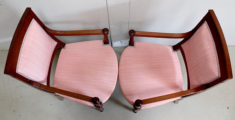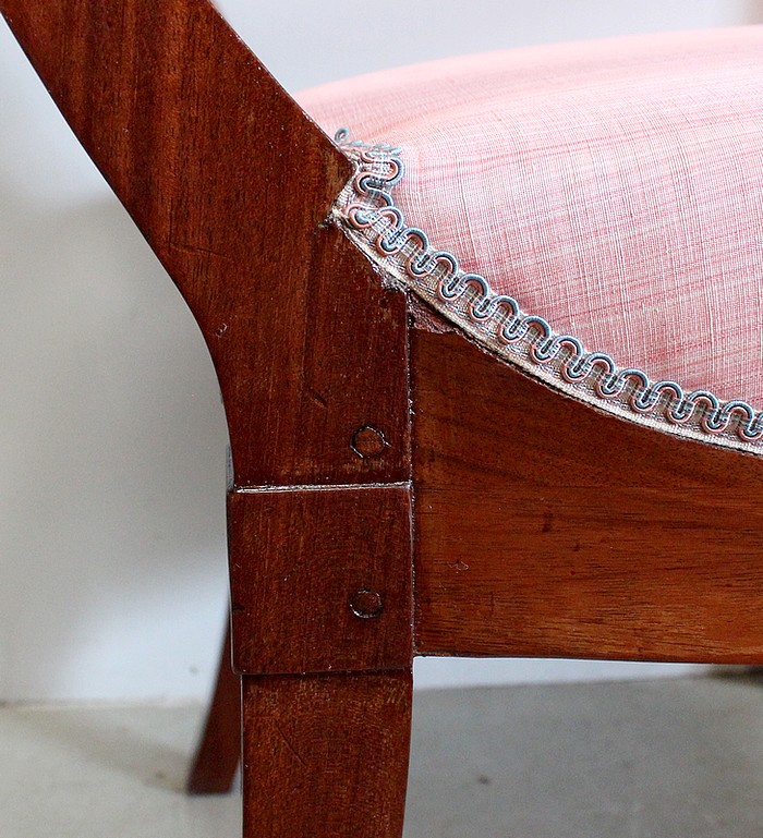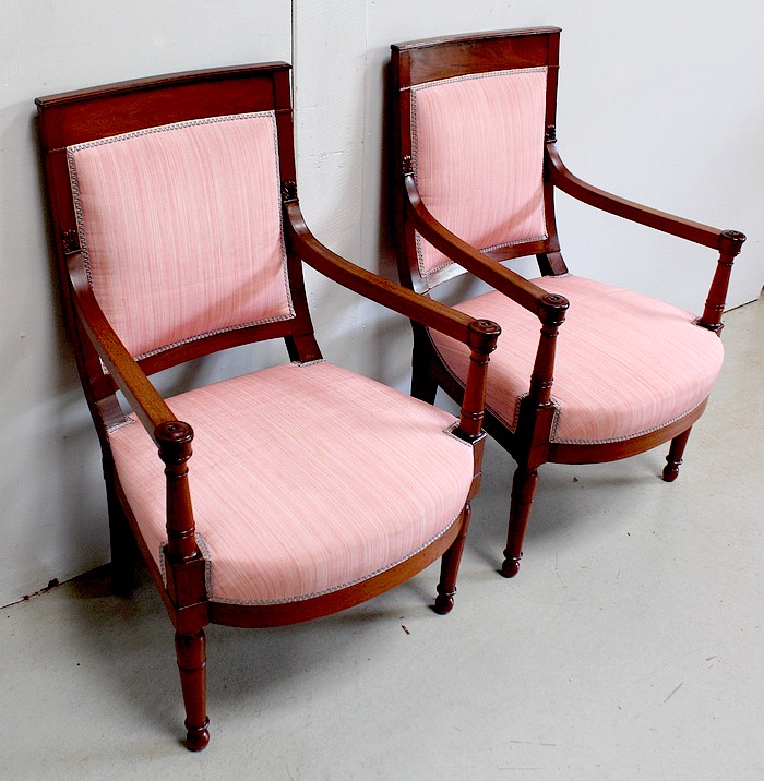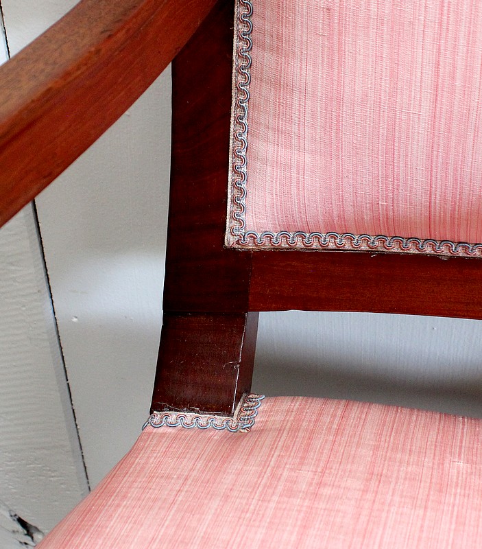 Paire de Fauteuils en Acajou, d’époque Consulat, recouverts d’un joli Tissu Rose dragée.