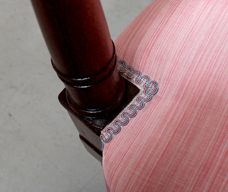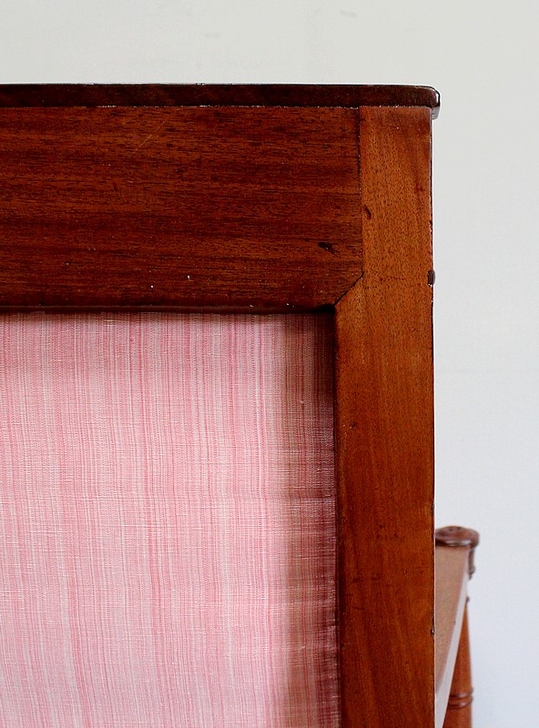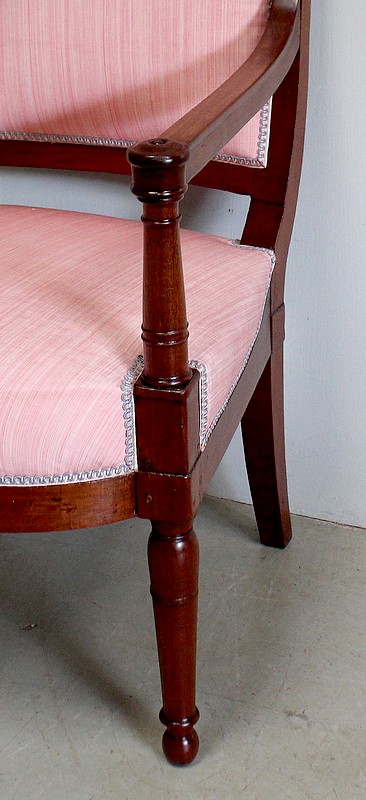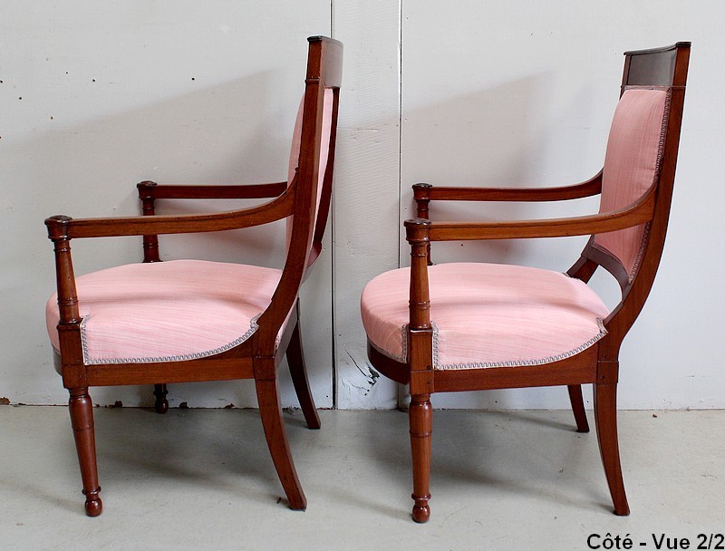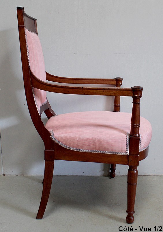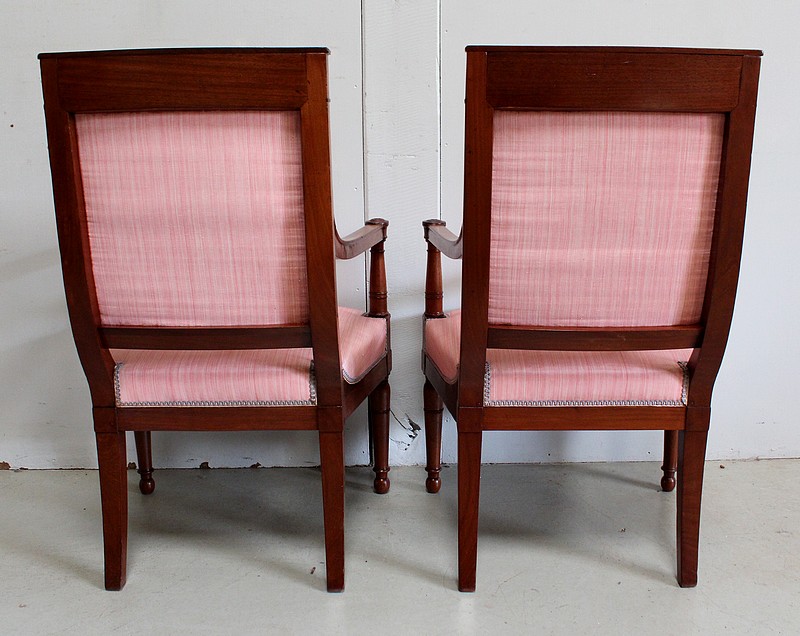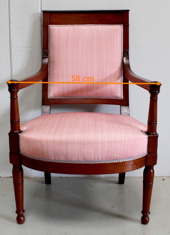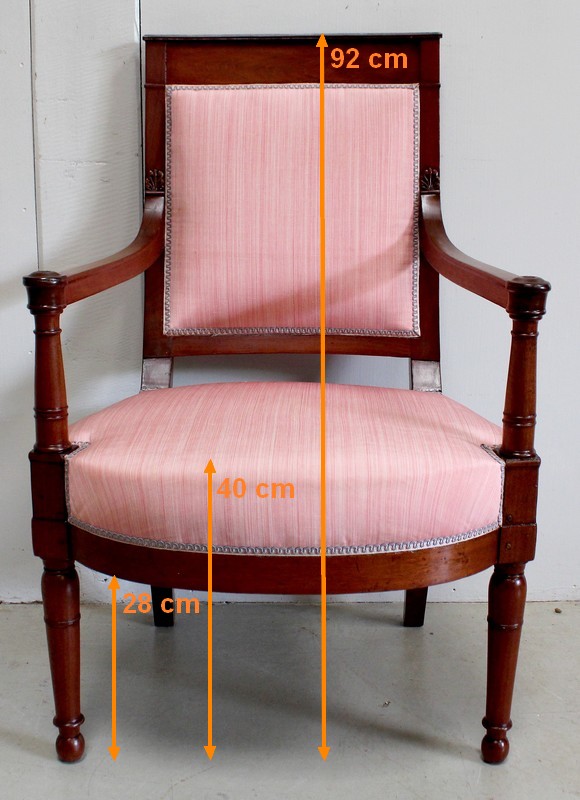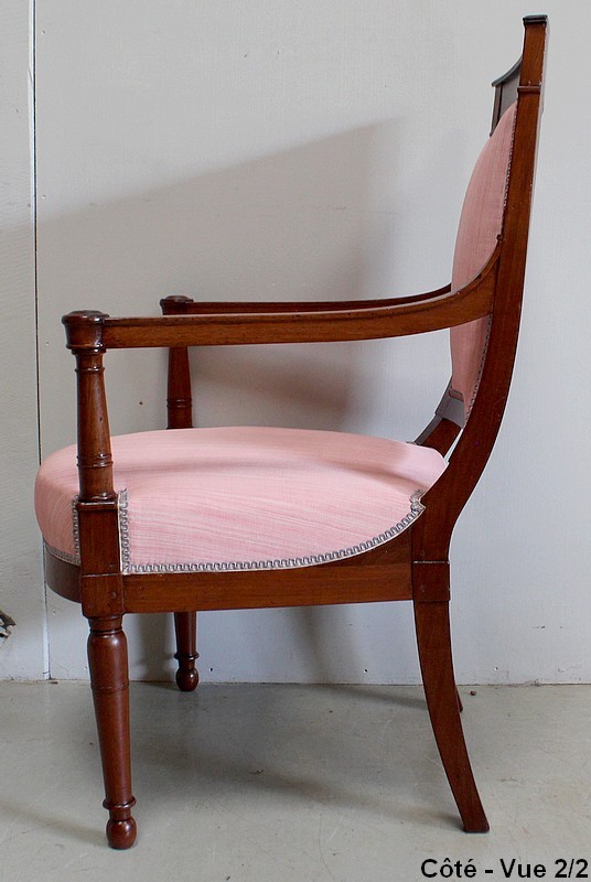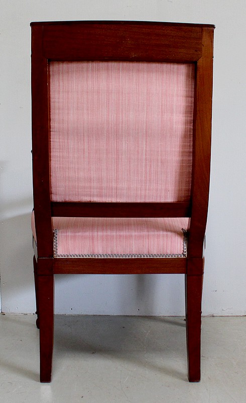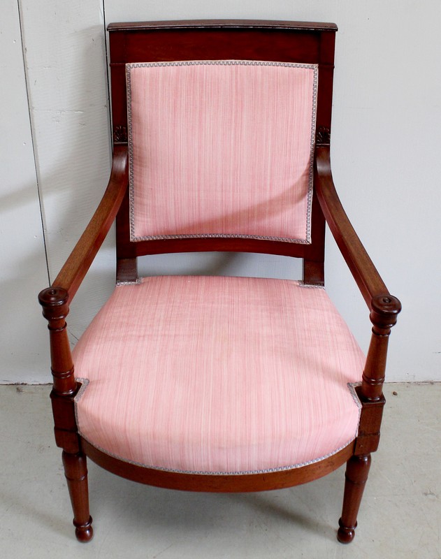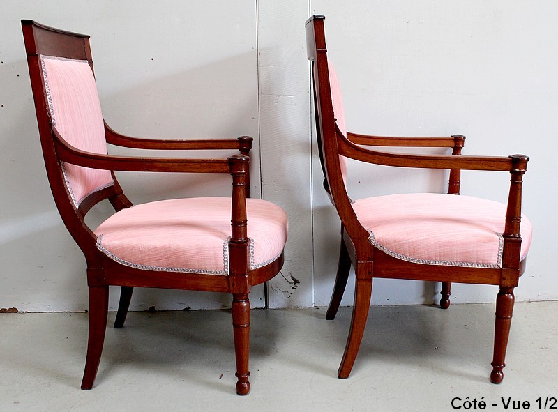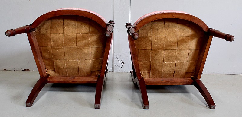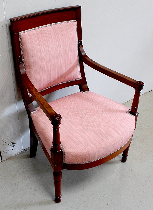 Paire de Fauteuils en Acajou, d’époque Consulat, recouverts d’un joli Tissu Rose dragée.