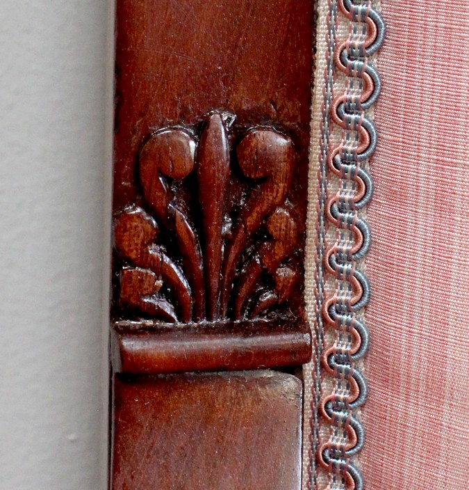 Pourvus de Dossiers droits légèrement cintrés et agrémentés d’une Rosace de chaque côté, ces Sièges présentent des Accotoirs élégants.