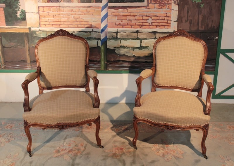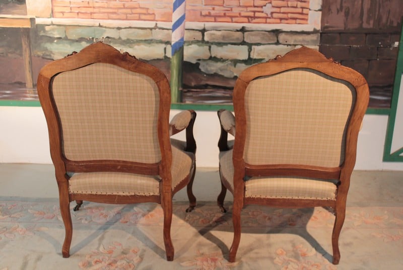 Paire de Fauteuils Louis XV en Noyer XIXe