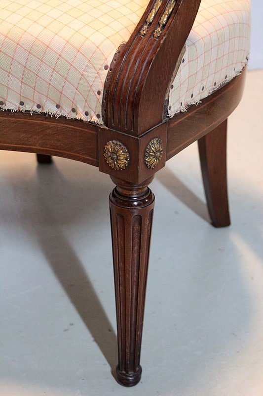 Ils reposent sur des pieds antérieurs fuselés à cannelures et des pieds postérieurs sabre.