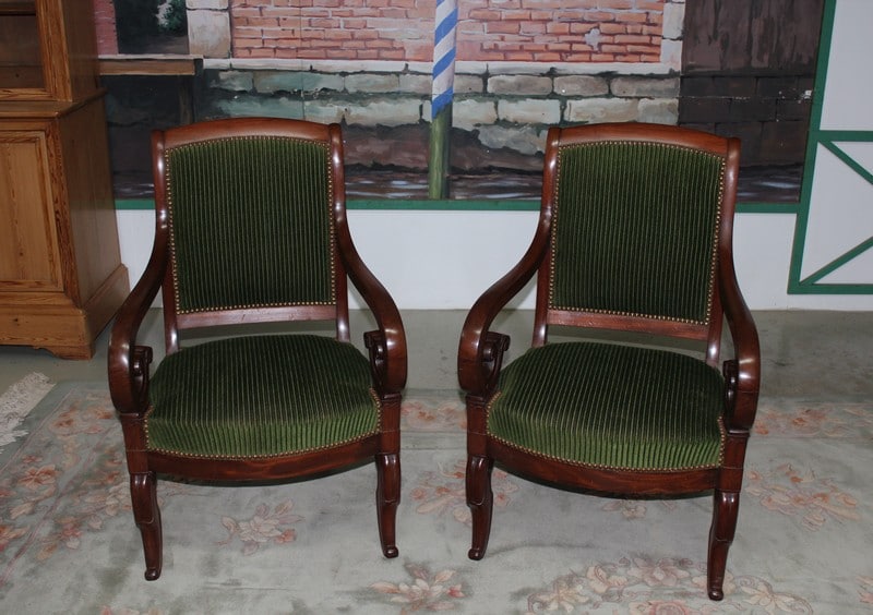 Ils sont recouverts d’un velours vert. L’assise est très souple.