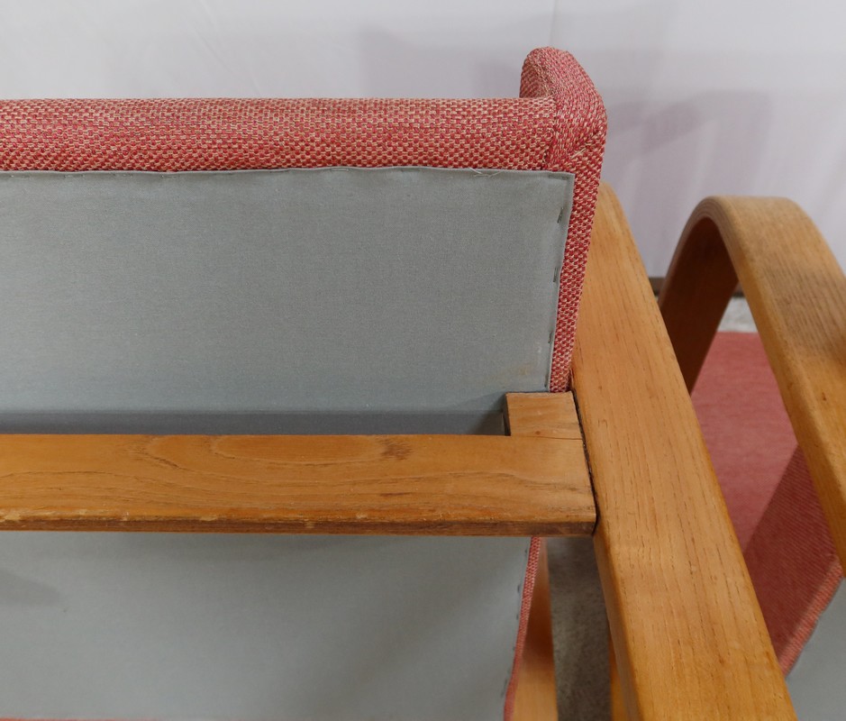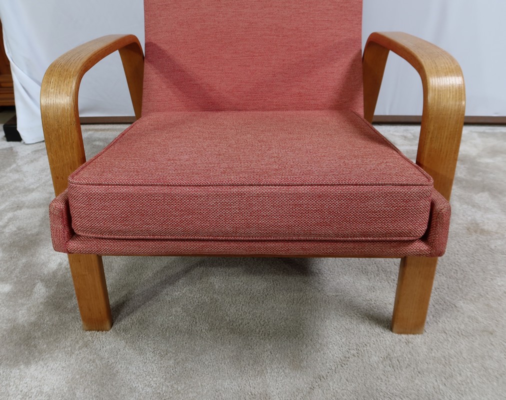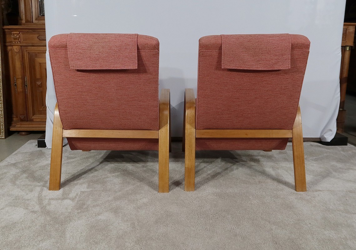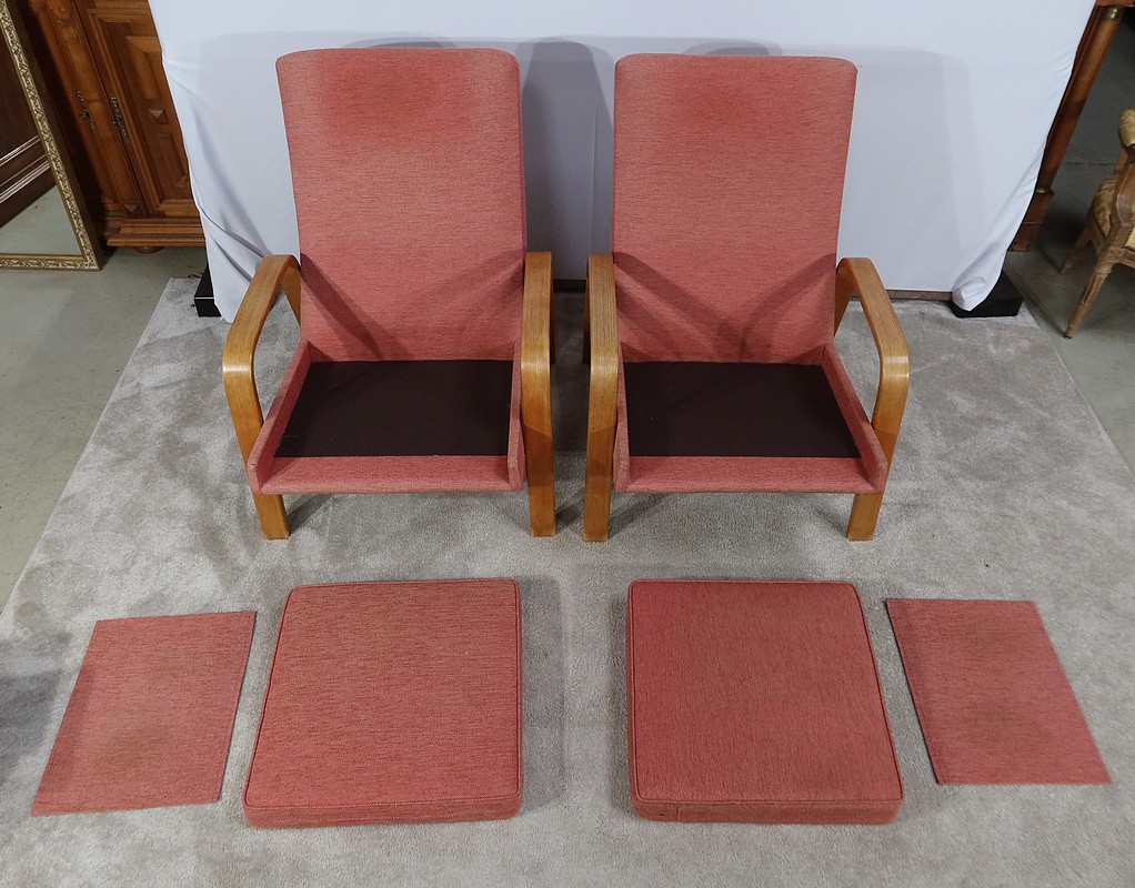 Paire de Fauteuils vintage en bois joliment courbé de forme incurvée.