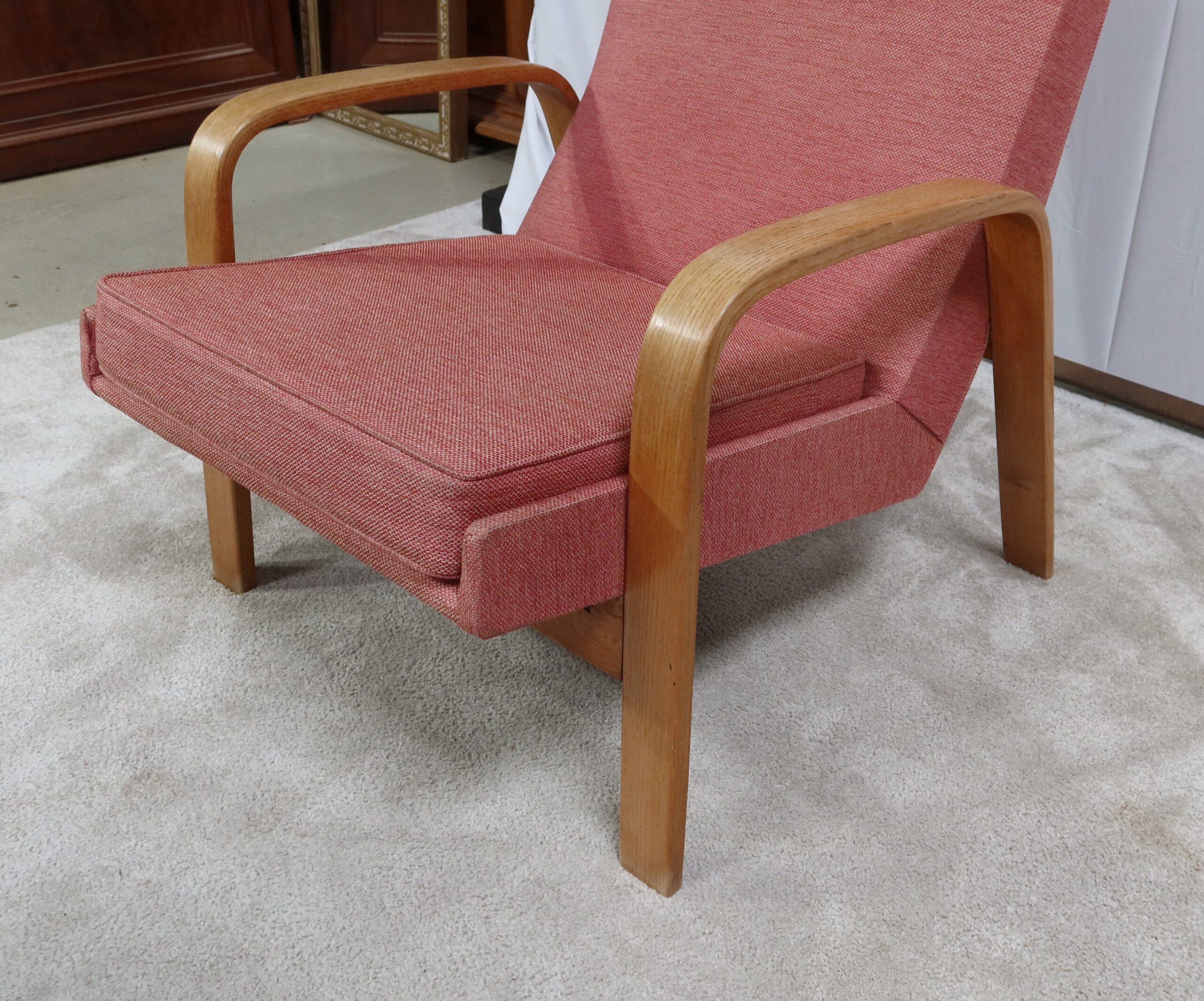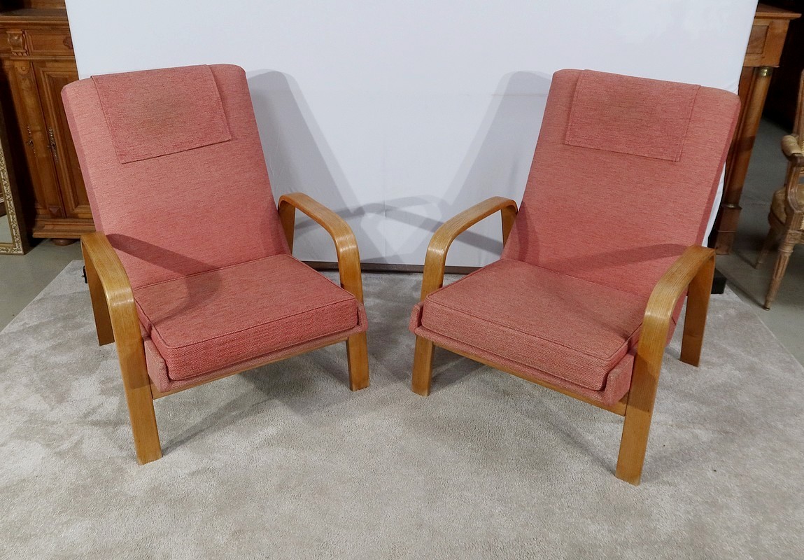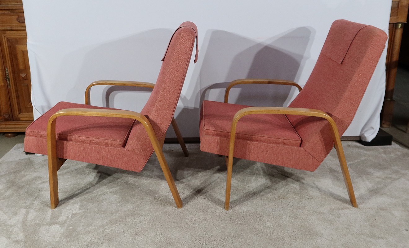 Paire de Fauteuils vintage en bois joliment courbé de forme incurvée.