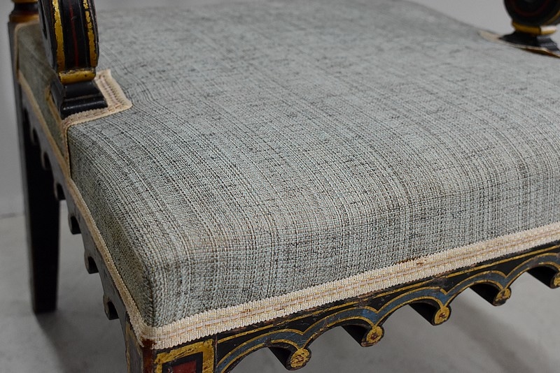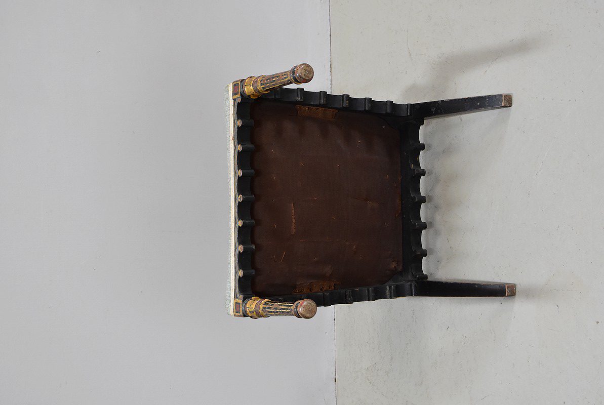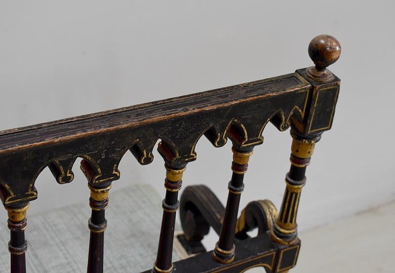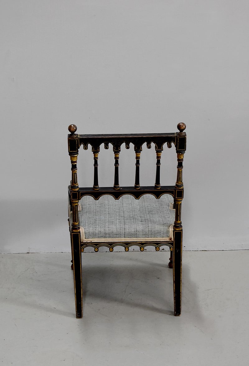 Petit fauteuil Napoléon III en bois noirci, peint et doré, dans son état d’origine.