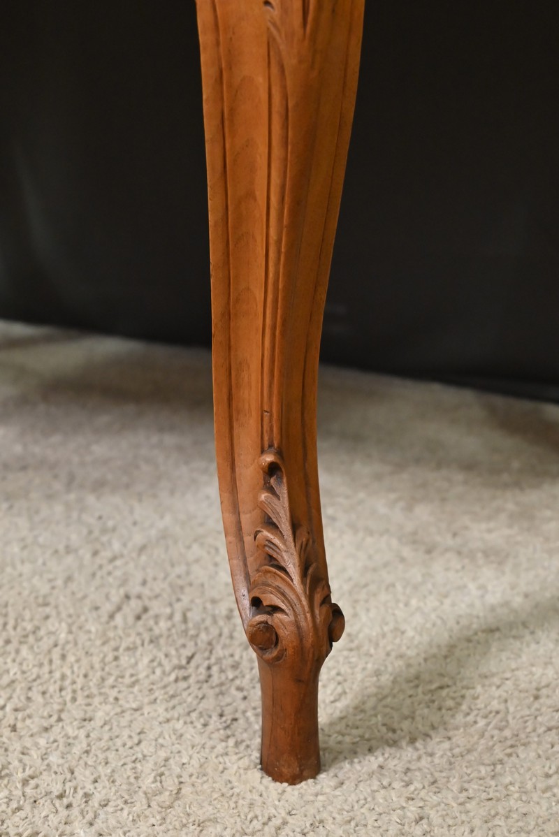Datant des années 1920, elle séduit par ses lignes galbées, ses pieds délicatement cambrés et ses sculptures fines qui rappellent l’artisanat d’exception de l’époque.