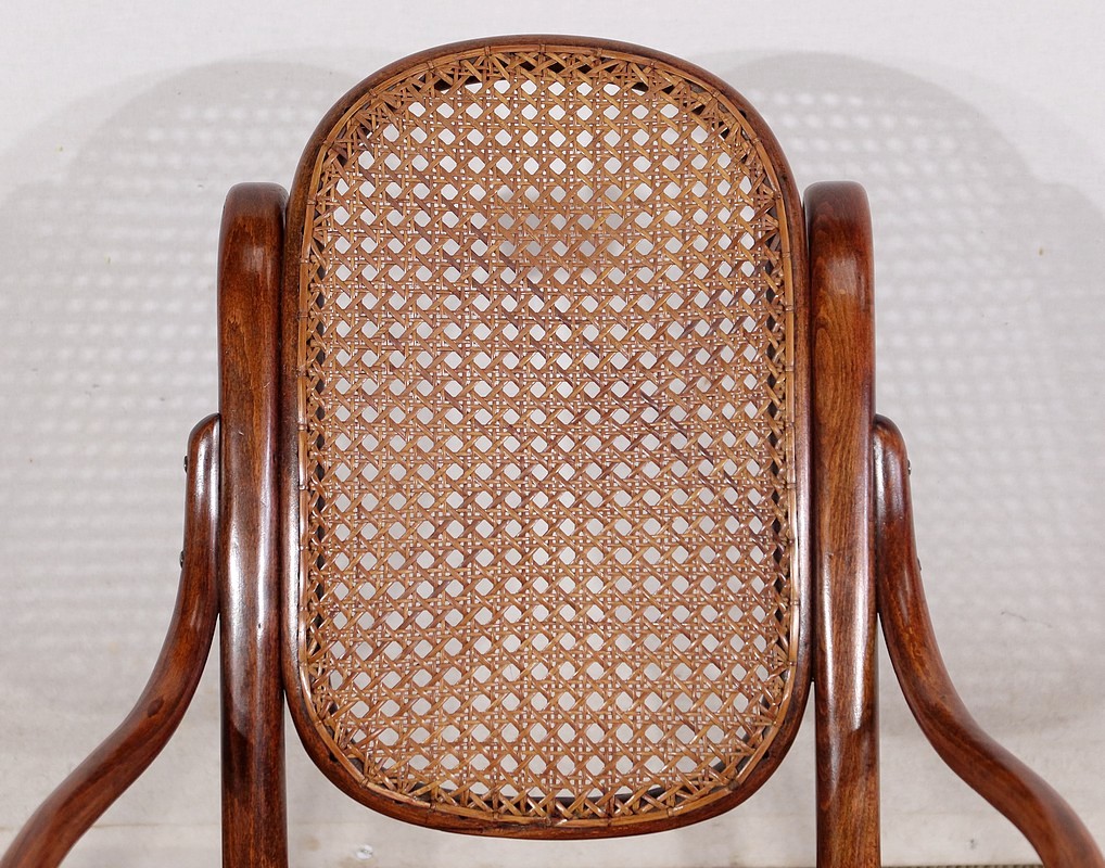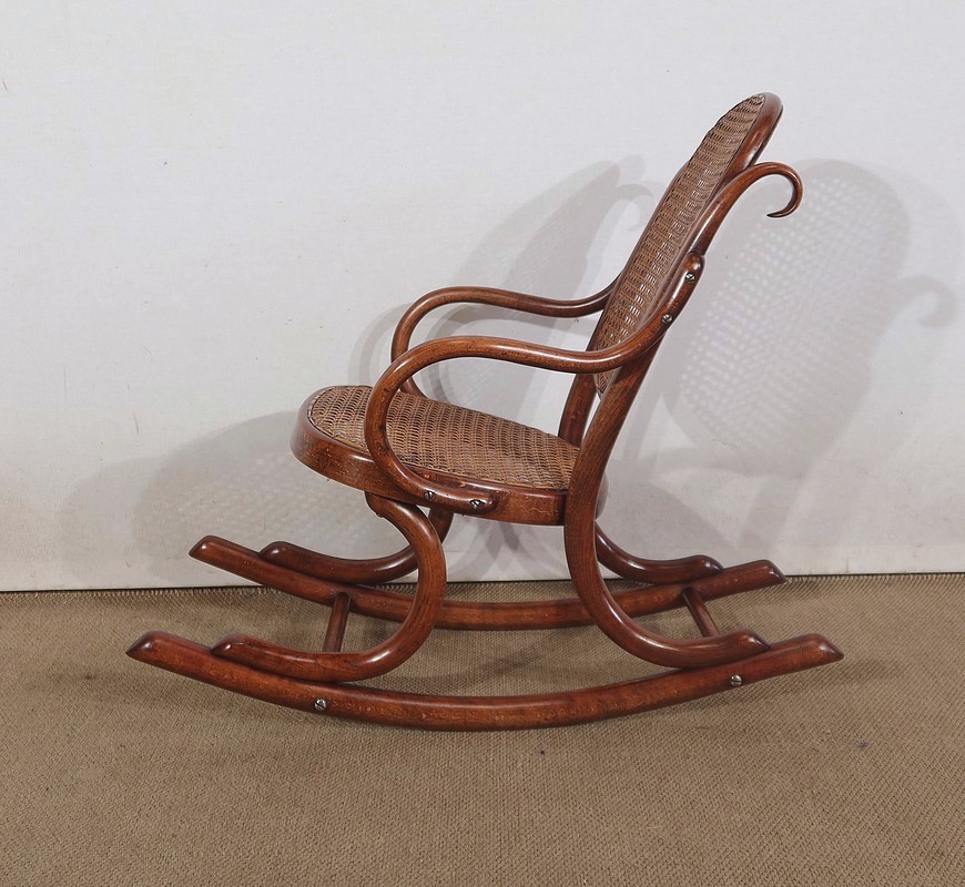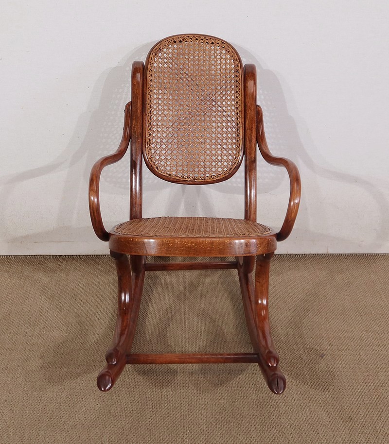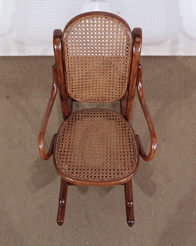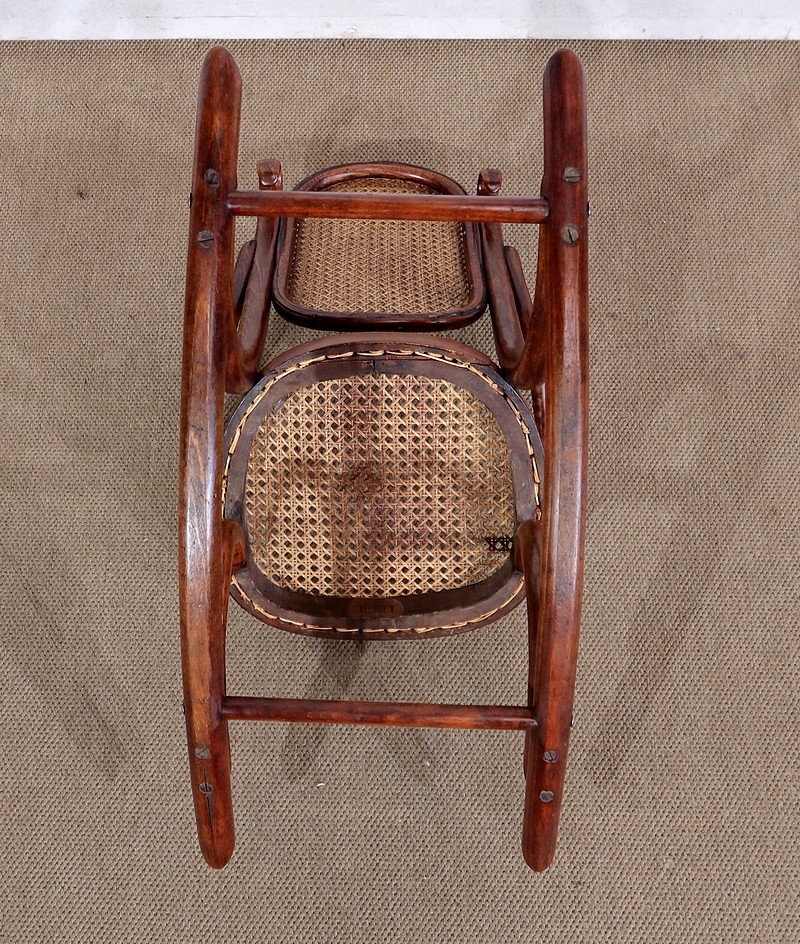 Composé d’un dossier et d’une assise en cannage, en parfait état, ce siège à bascule solide possède une patine refaite à l’identique du modèle original.
