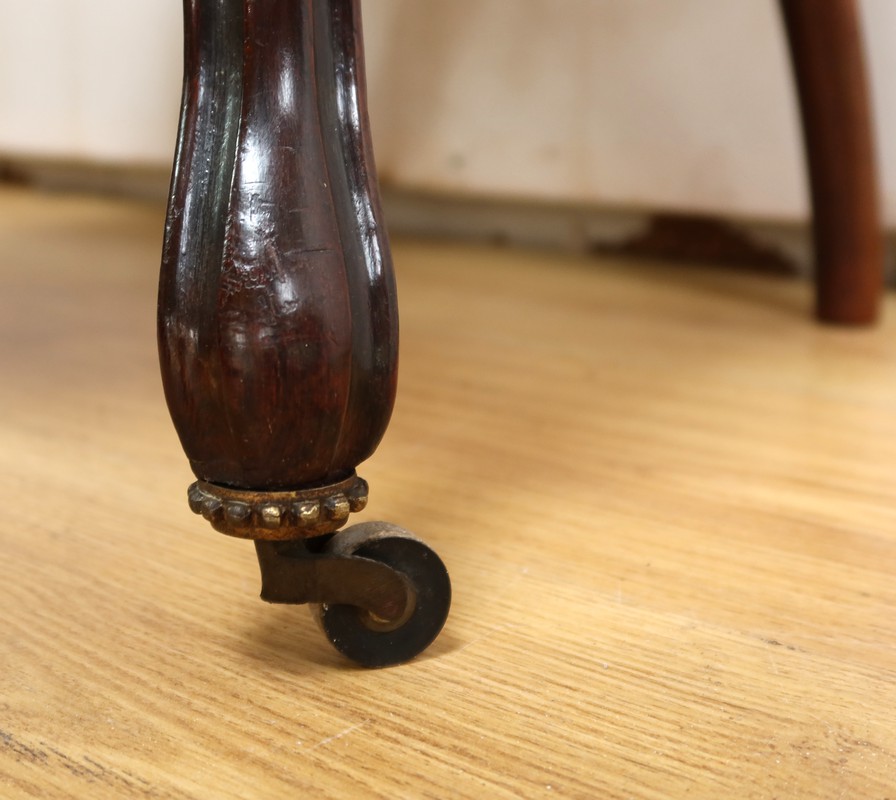 Ce magnifique salon Napoléon III en palissandre massif se compose de trois fauteuils, trois chaises et un canapé, chacun doté d’un dossier à raquette finement sculpté de motifs végétaux.