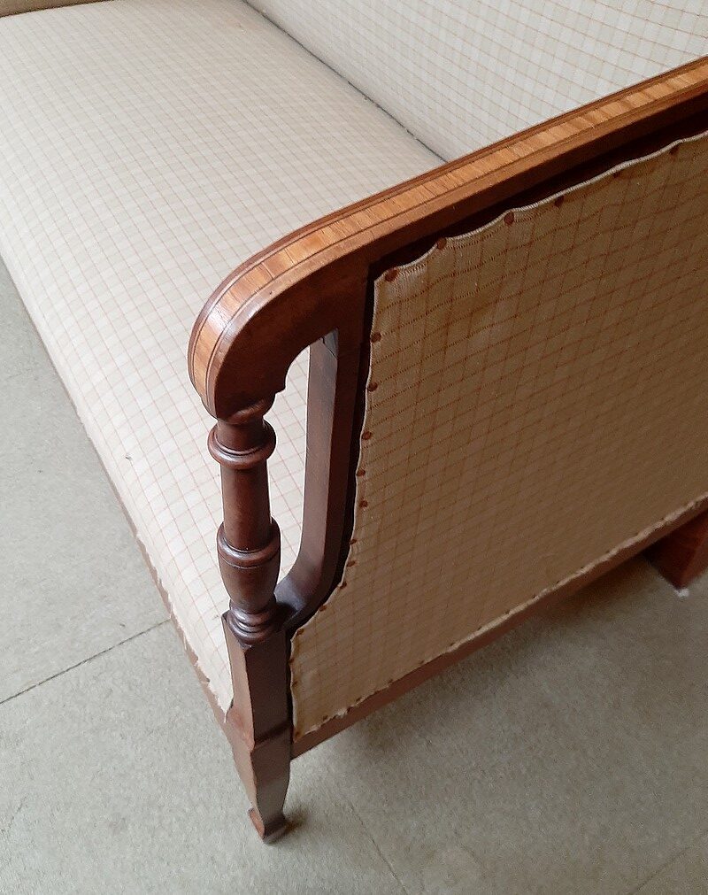 La tapisserie a été entièrement refaite, à l’ancienne, avec crins et ressorts.