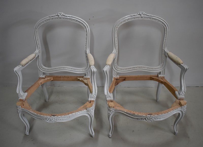 Les accotoirs, ainsi que les dossiers et les pieds sont tous moulurés et sculptés.