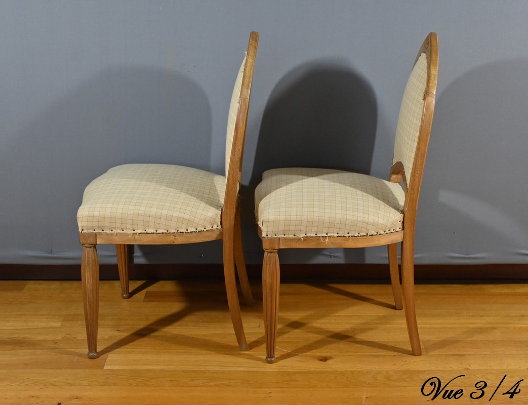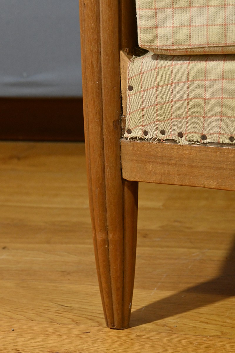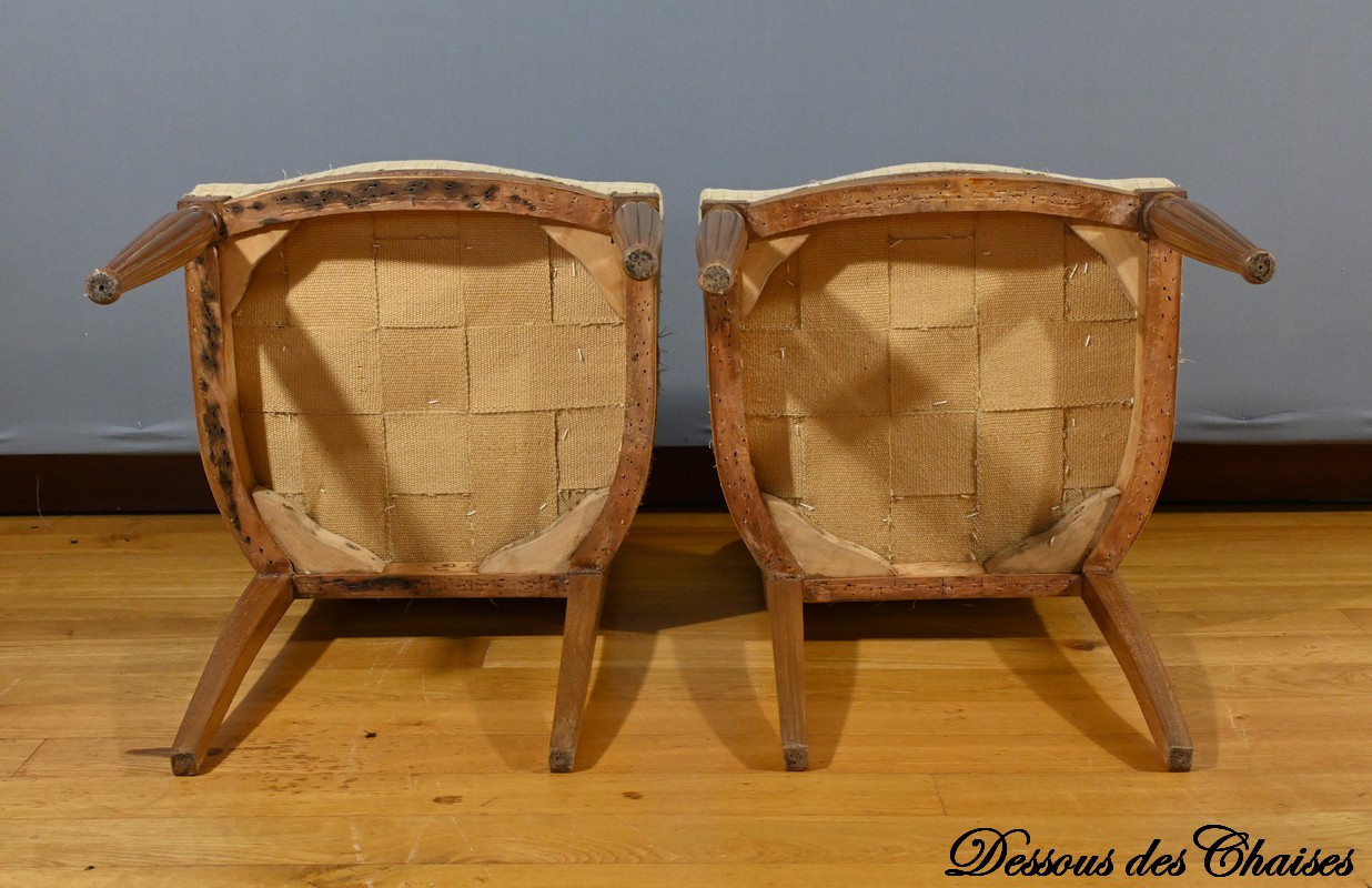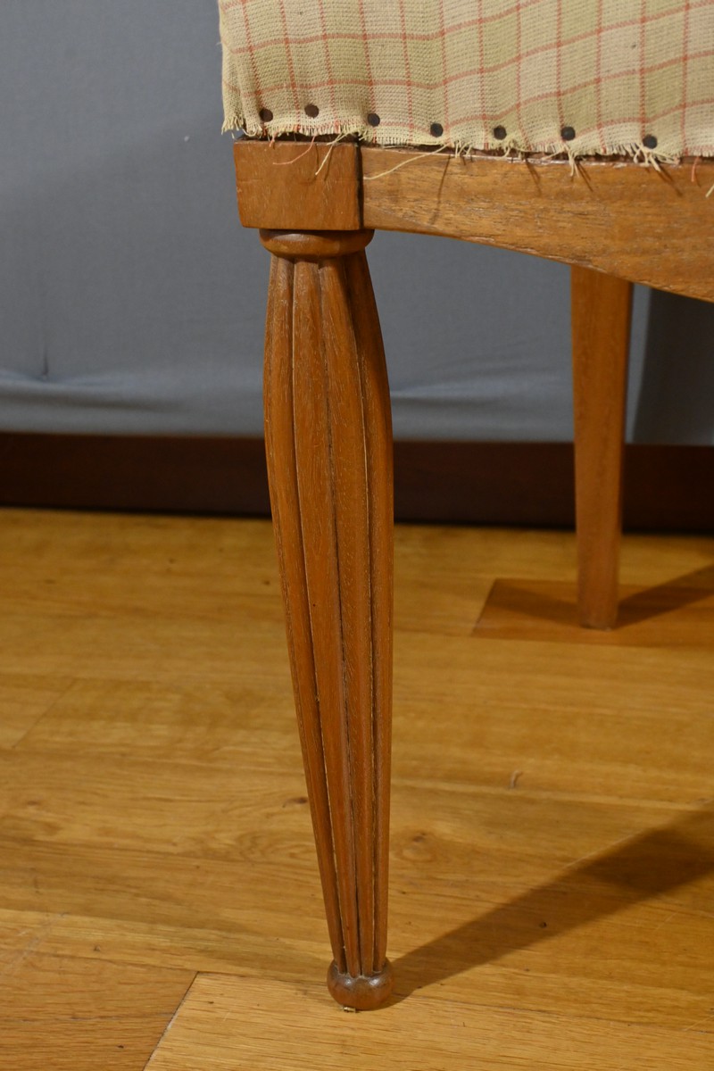 Le canapé, les fauteuils et les chaises sont habillés d’un tissu d’apprêt en parfait état, offrant la possibilité de personnaliser cet ensemble selon les goûts et les préférences de chacun.