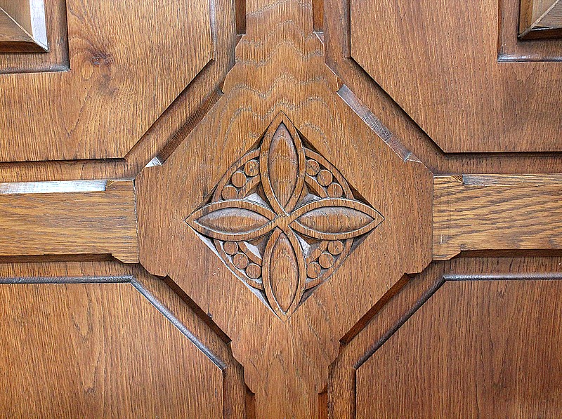 Le Dossier est composé de quatre Panneaux formant une grande Croix en son centre et intégrant dans son Intérieur un Motif circulaire en Fleur.