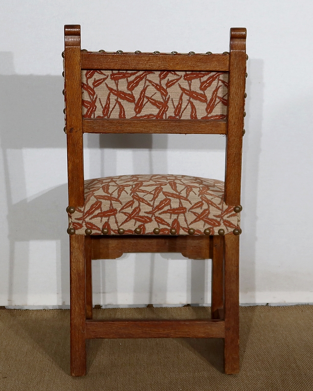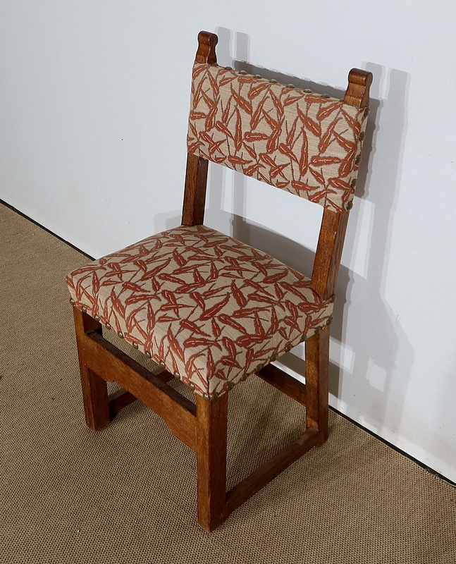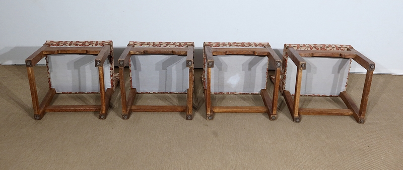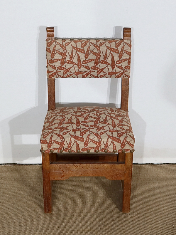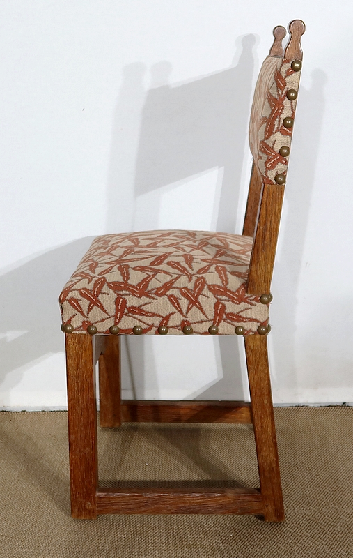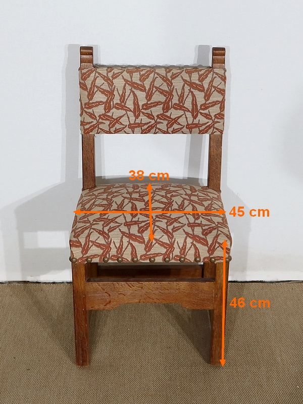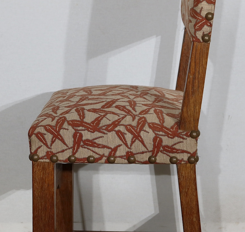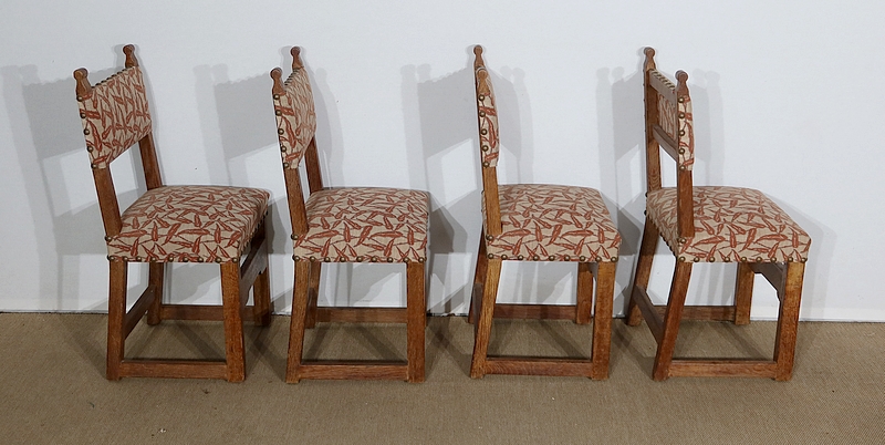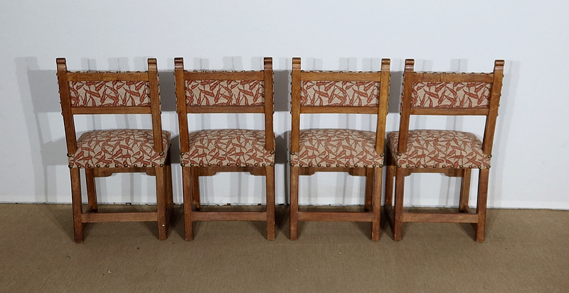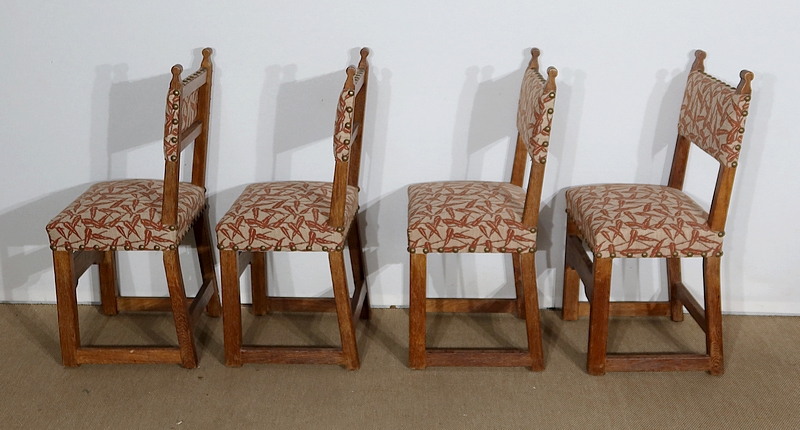 Suite de quatre chaises en chêne, robustes et confortables, en excellent état.