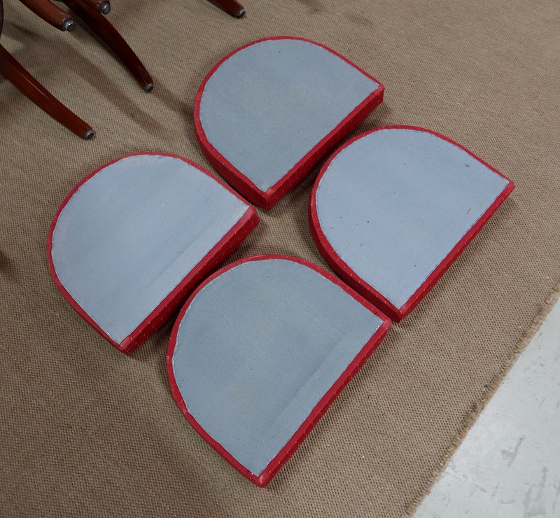 Ces quatre chaises reposent sur deux pieds dits à jarret sur le devant et deux pieds sabres à l’arrière.