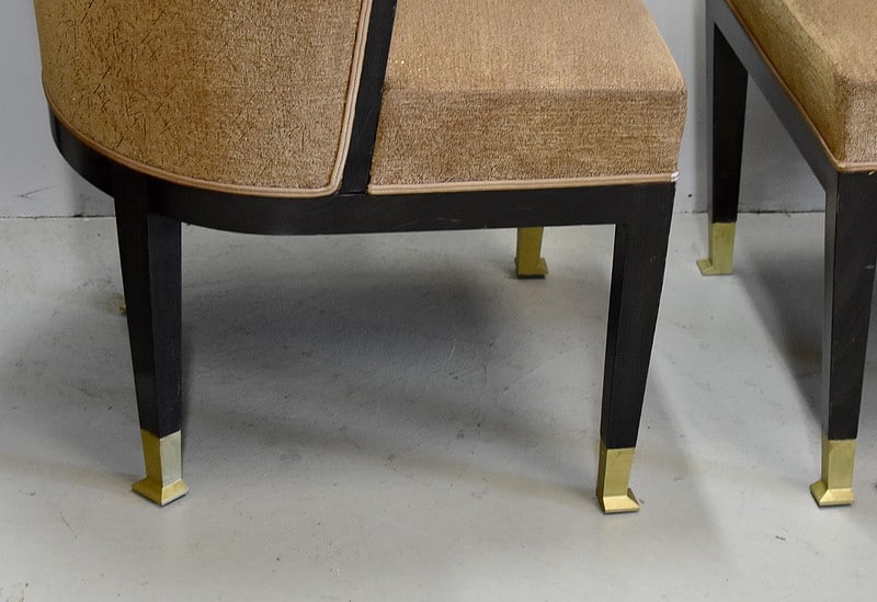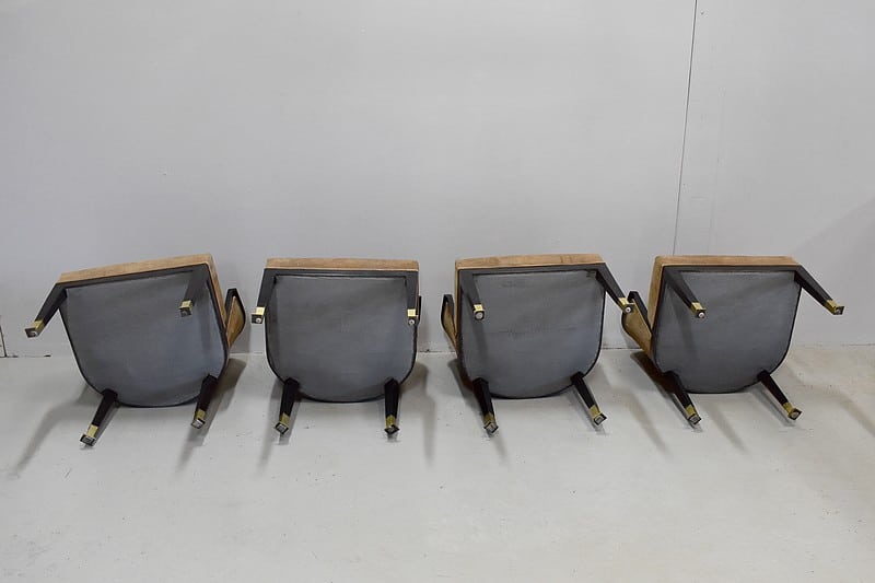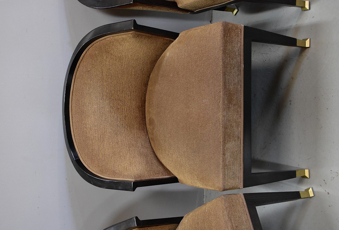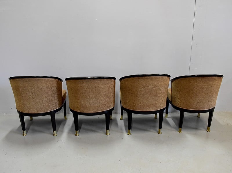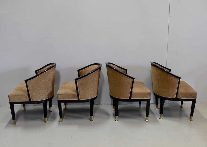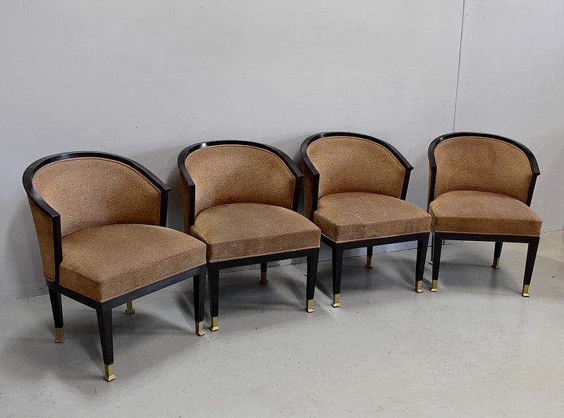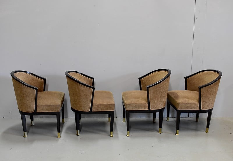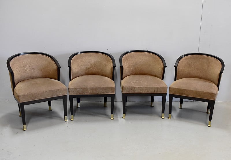 Suite de 4 fauteuils Art Déco en Hêtre noirci à dossiers Corbeille.