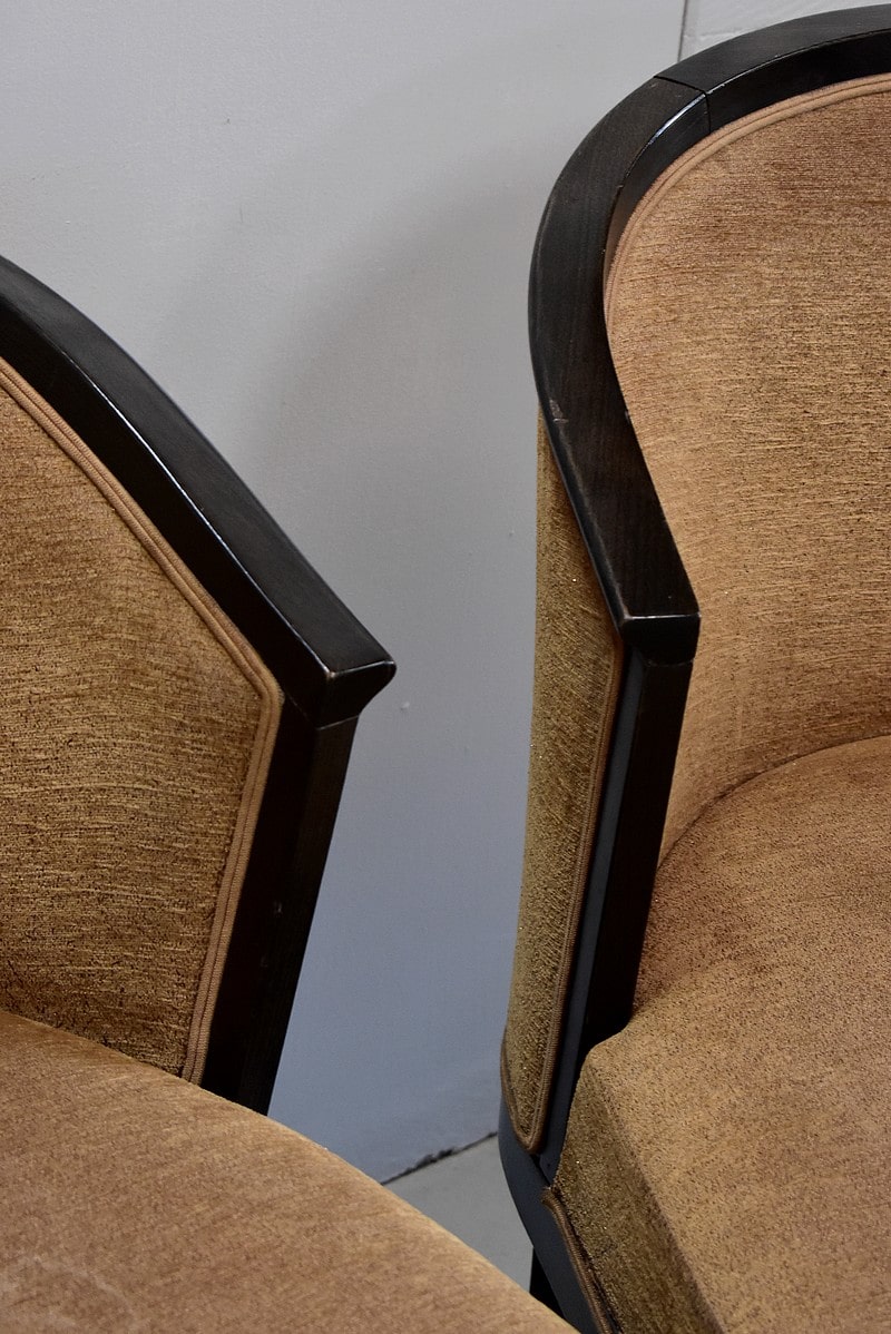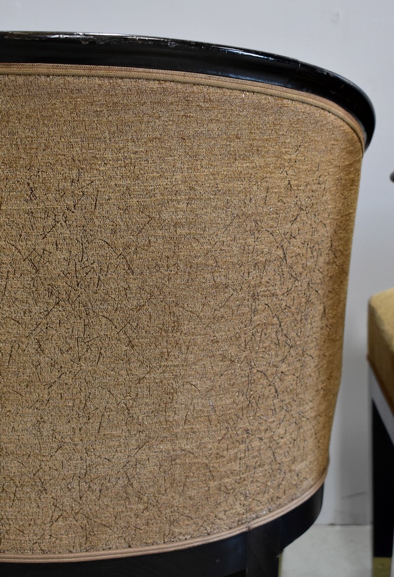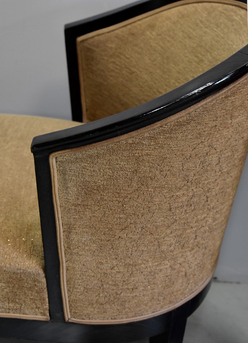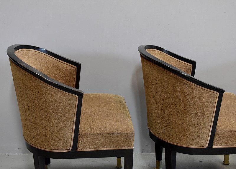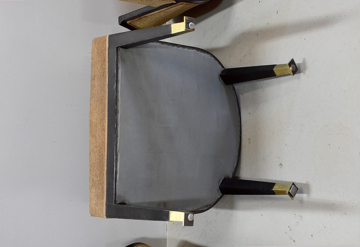 Suite de 4 fauteuils Art Déco en Hêtre noirci à dossiers Corbeille.