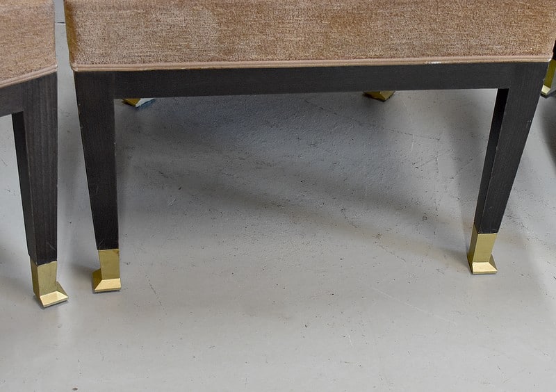 Ils reposent sur 4 pieds gainés agrémentés de sabots carrés biseautés en métal doré.