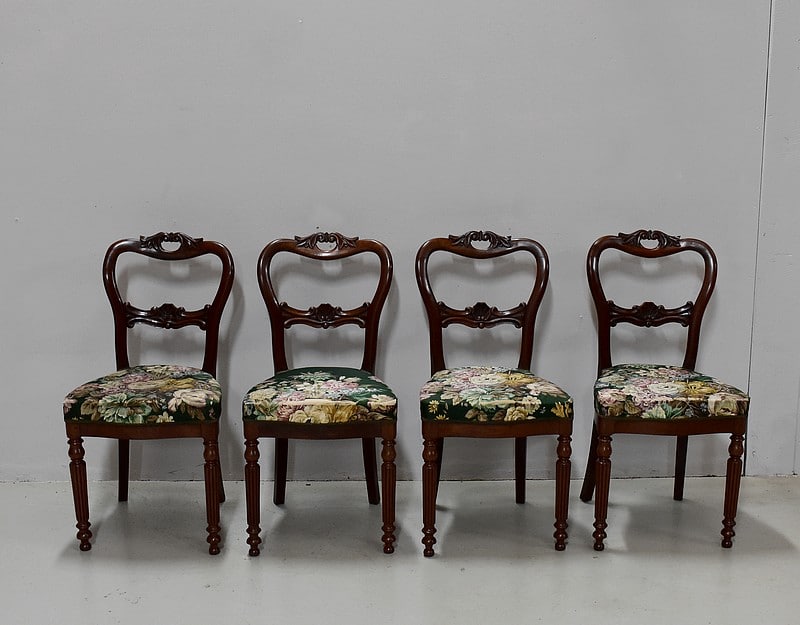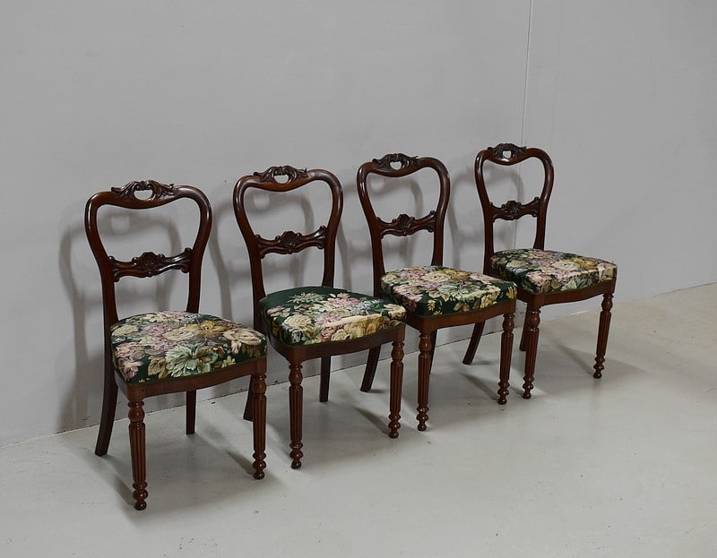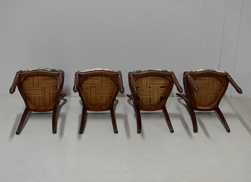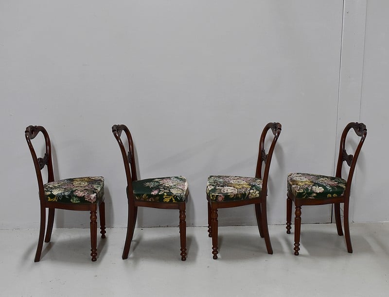 Suite de 4 petites chaises Louis-Philippe en Acajou massif et placage d’Acajou.