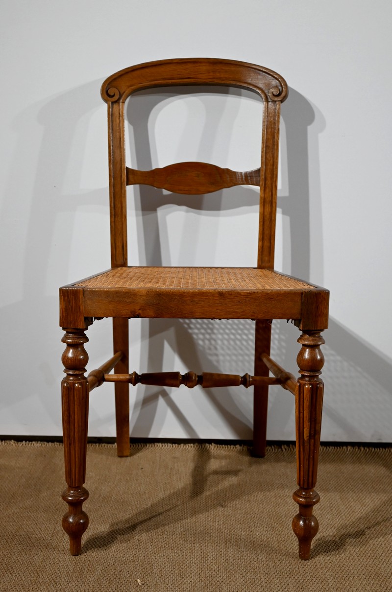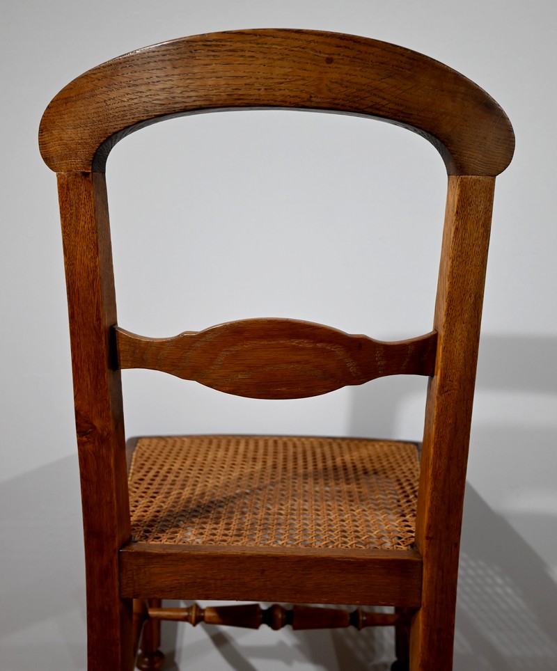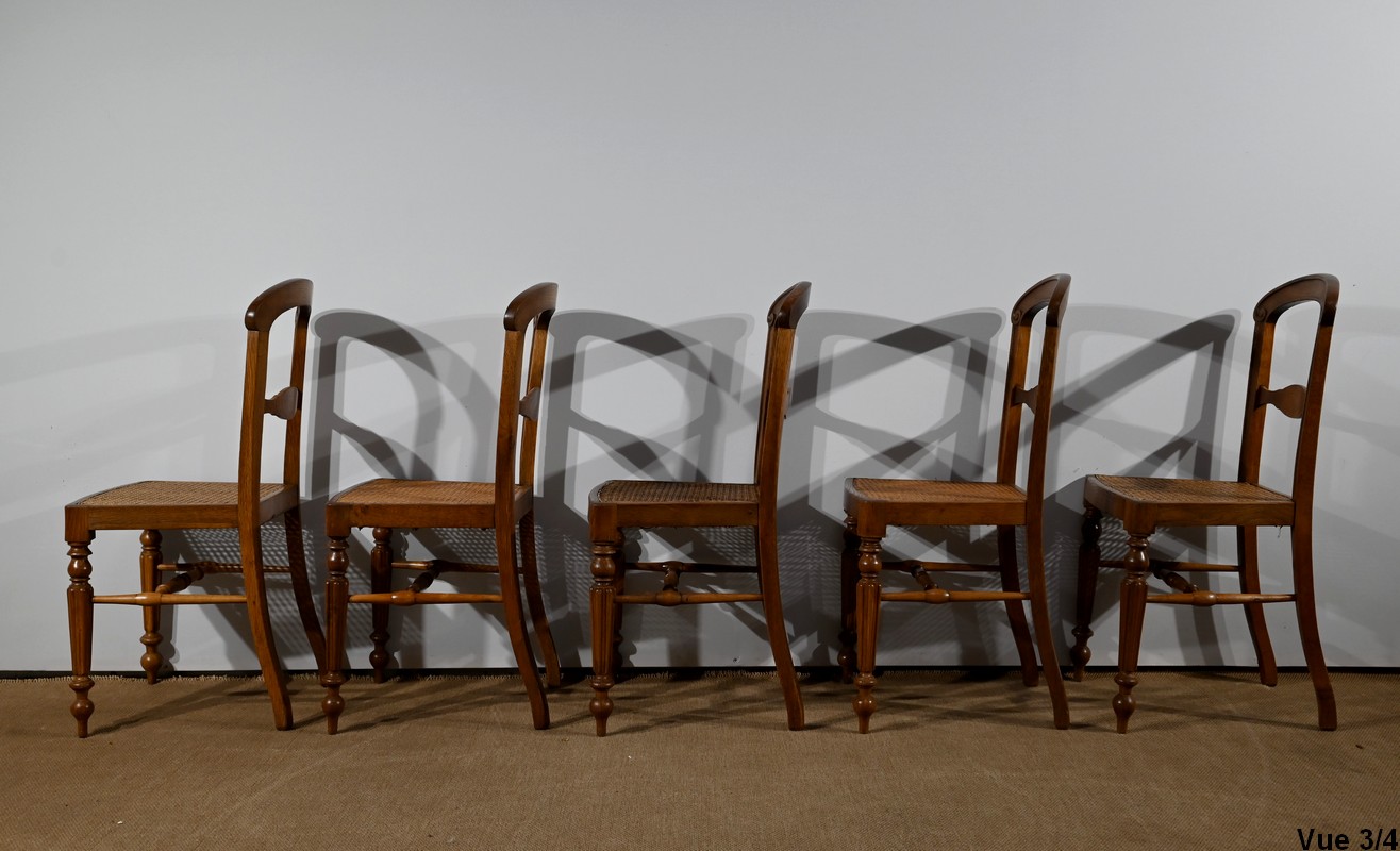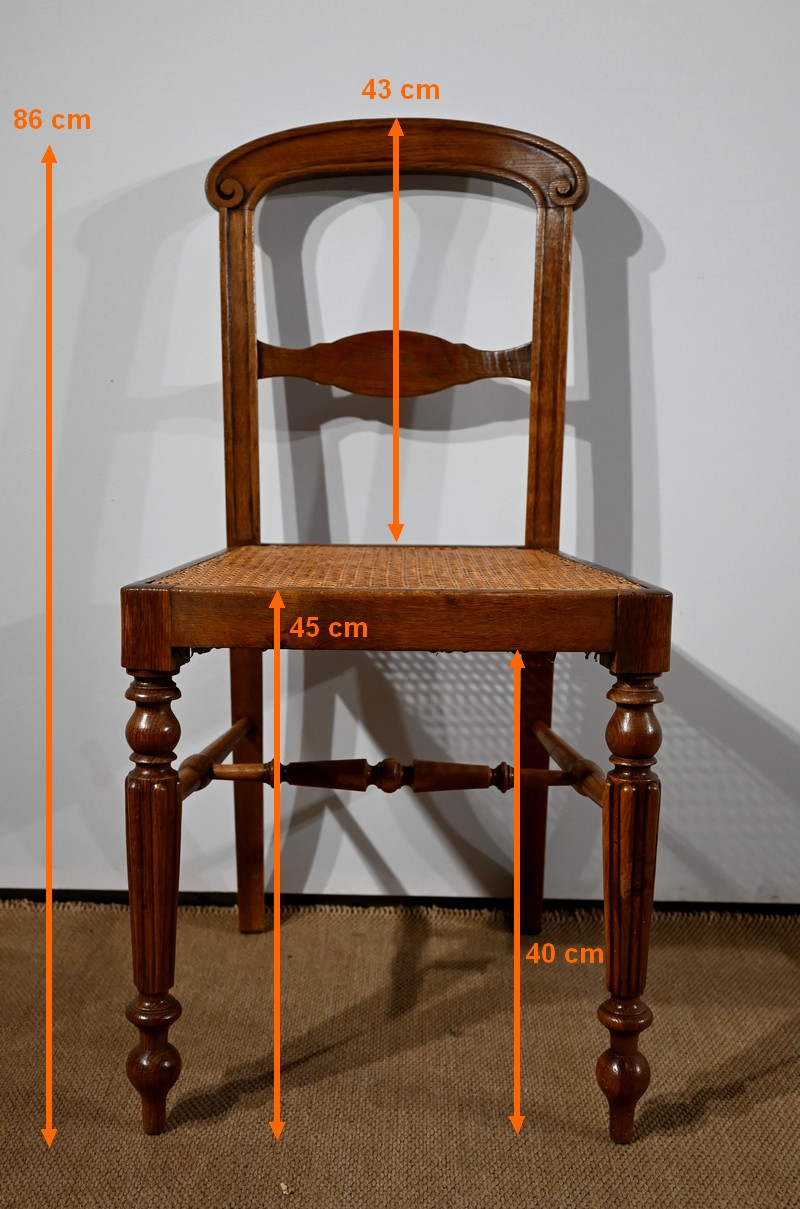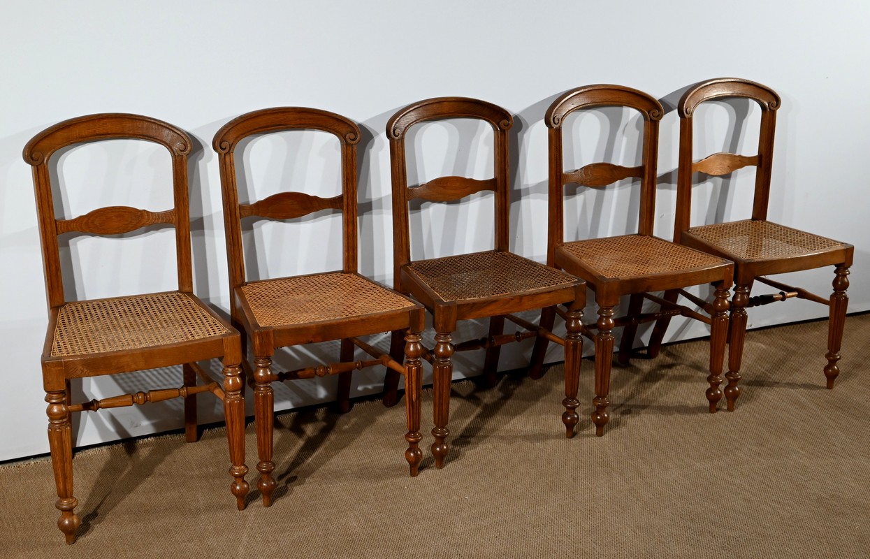 Suite de cinq chaises cannées en chêne massif, époque Louis-Philippe.