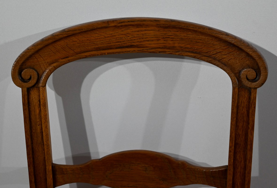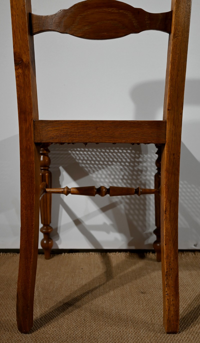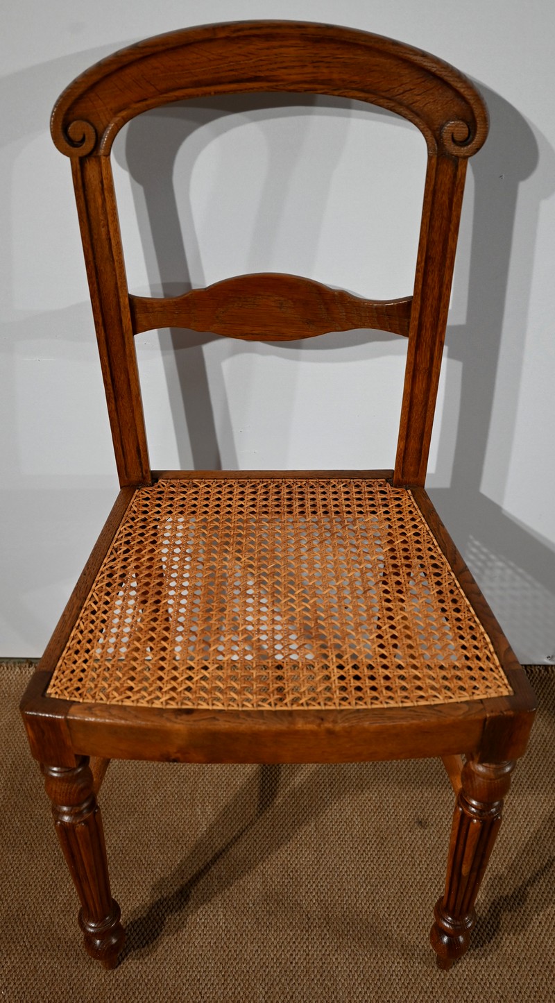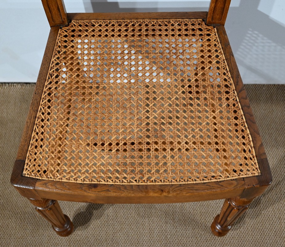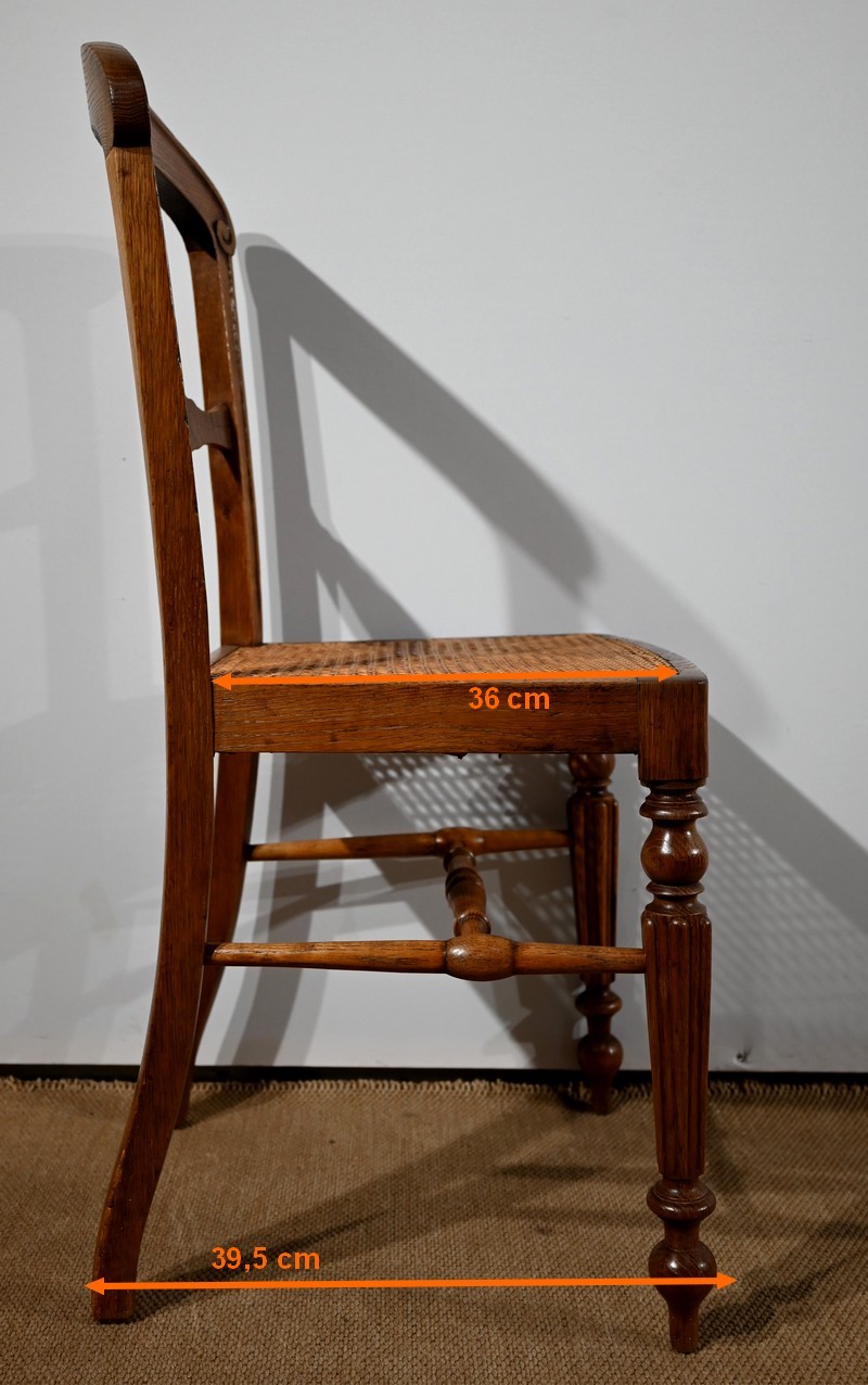 Suite de cinq chaises cannées en chêne massif, époque Louis-Philippe.