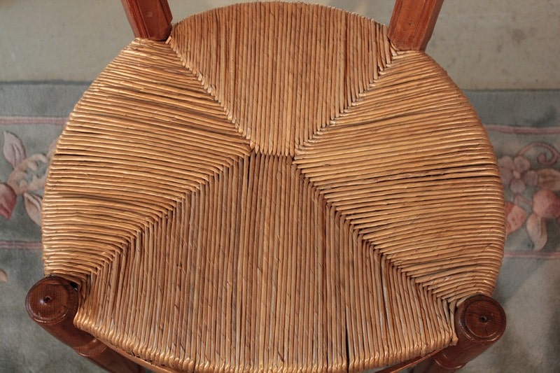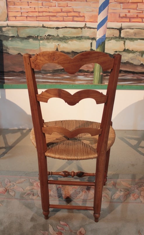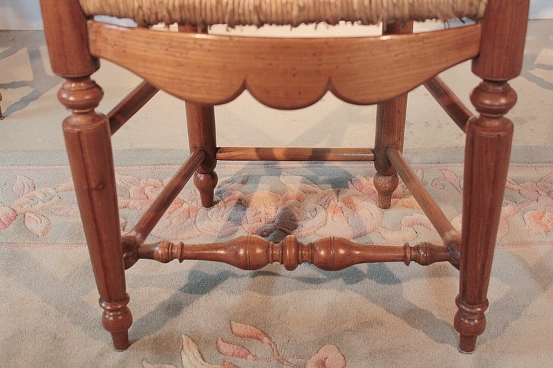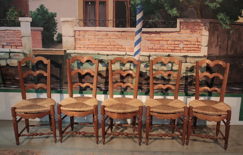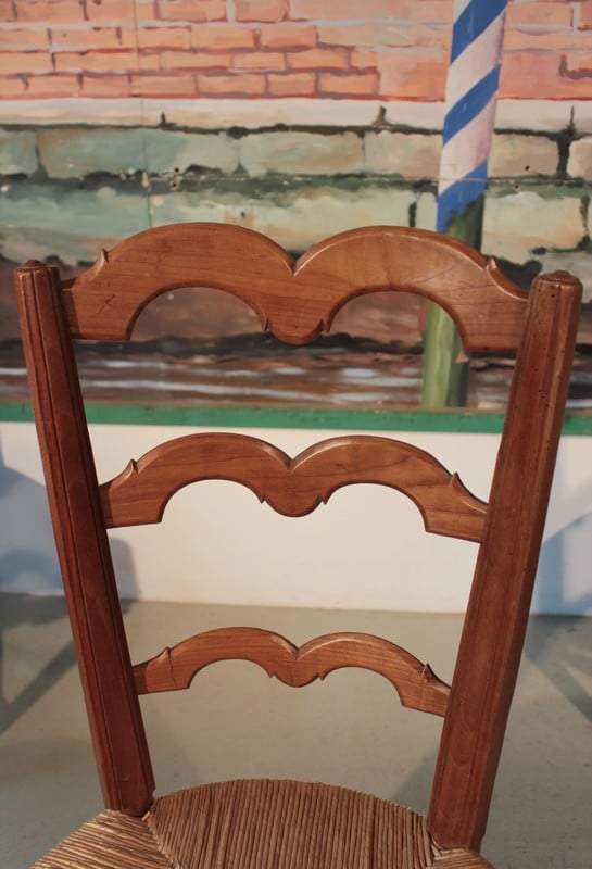 Suite de 5 chaises en merisier dans le goût Louis XV – Louis XVI provençal. Les assises paillées ont été refaites. Époque : milieu XIXe.