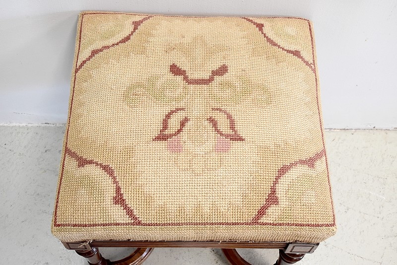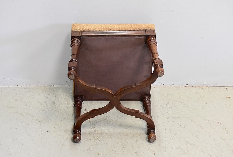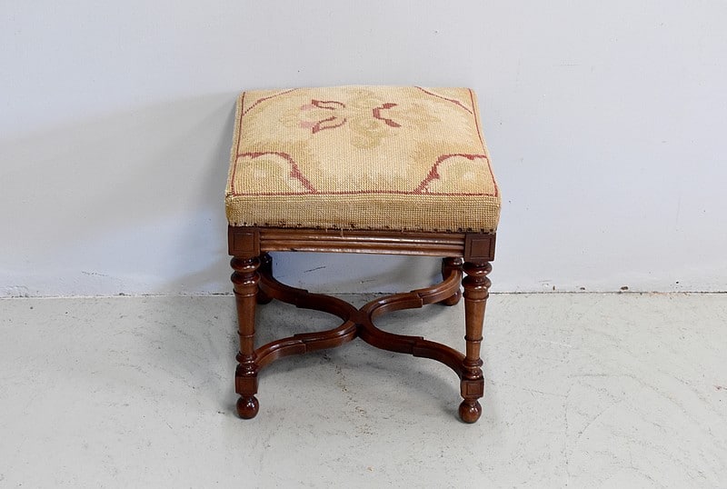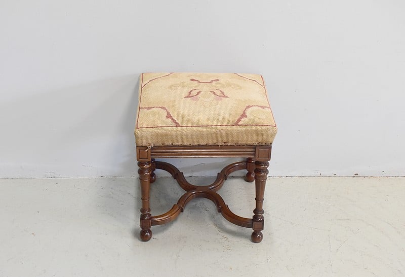 Tabouret carré dans le goût Louis XIV en Noyer massif.