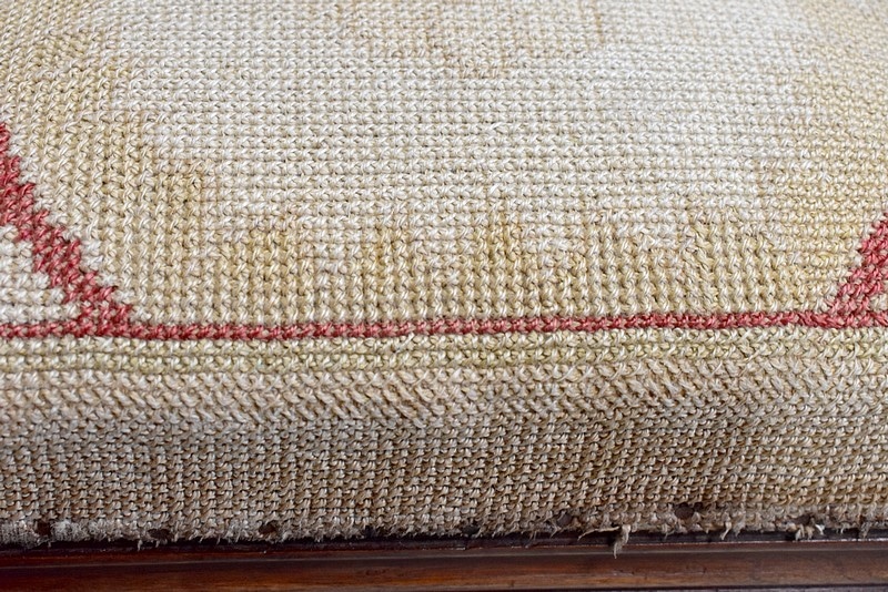 Son assise est recouverte d’un canevas d’origine à motif central.