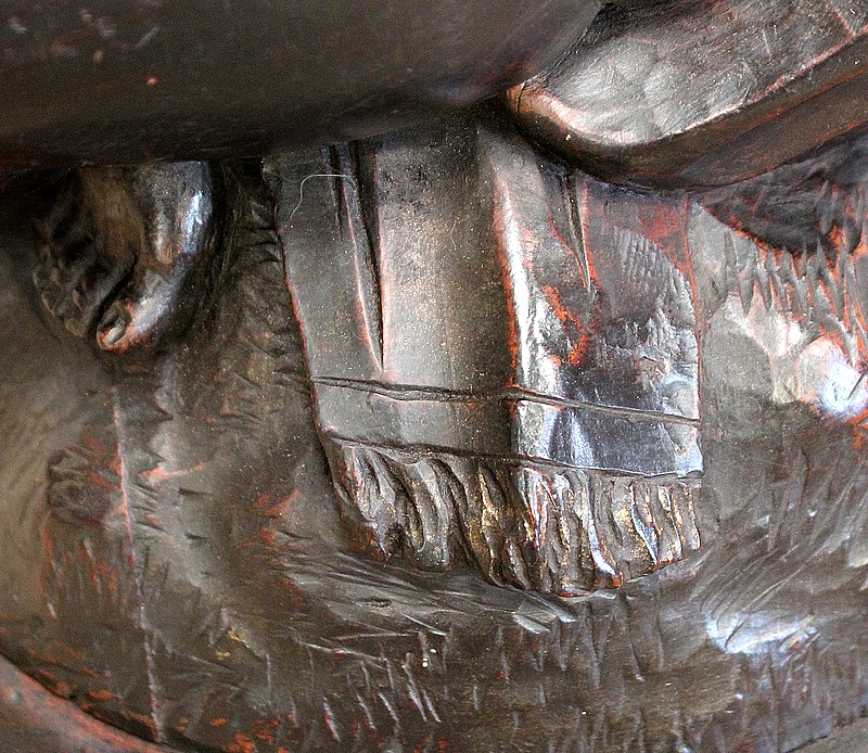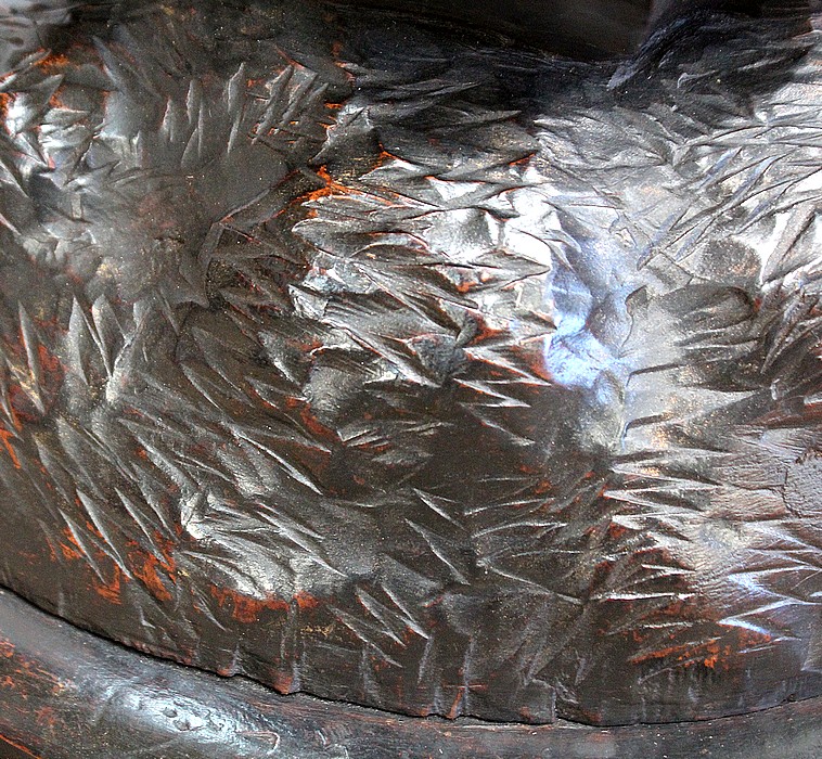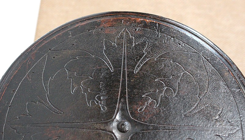 L’assise subtilement en cuvette présente de légères et fines pyrogravures représentant de grandes feuilles.
