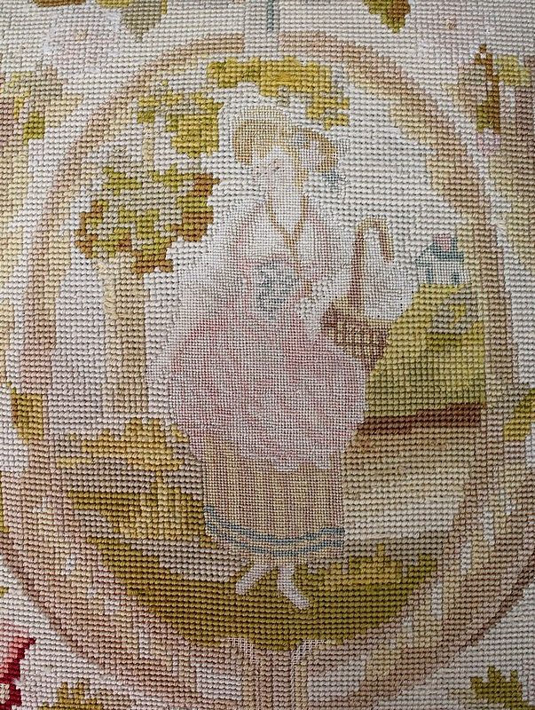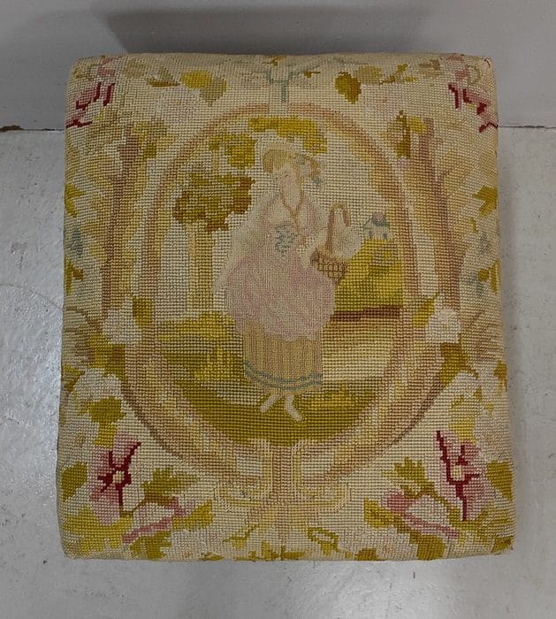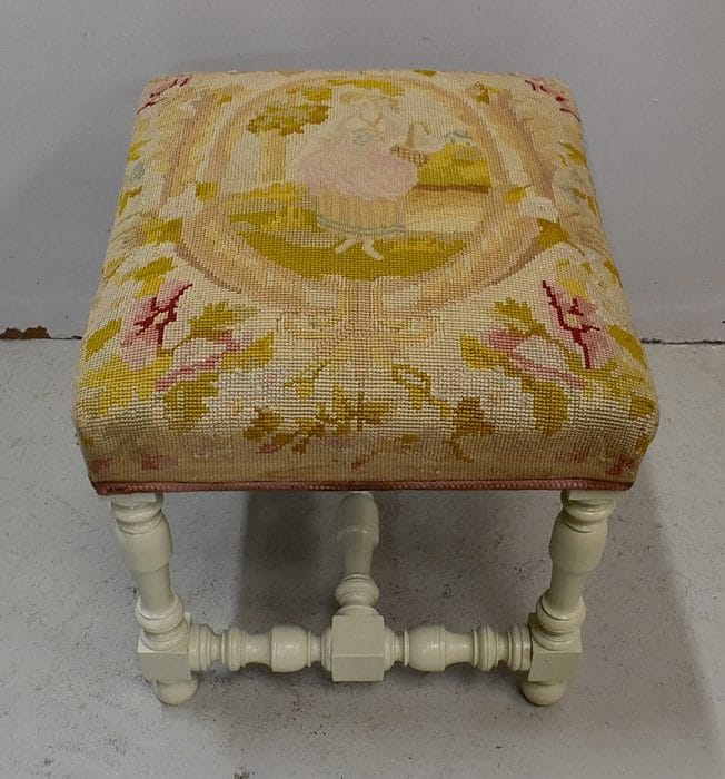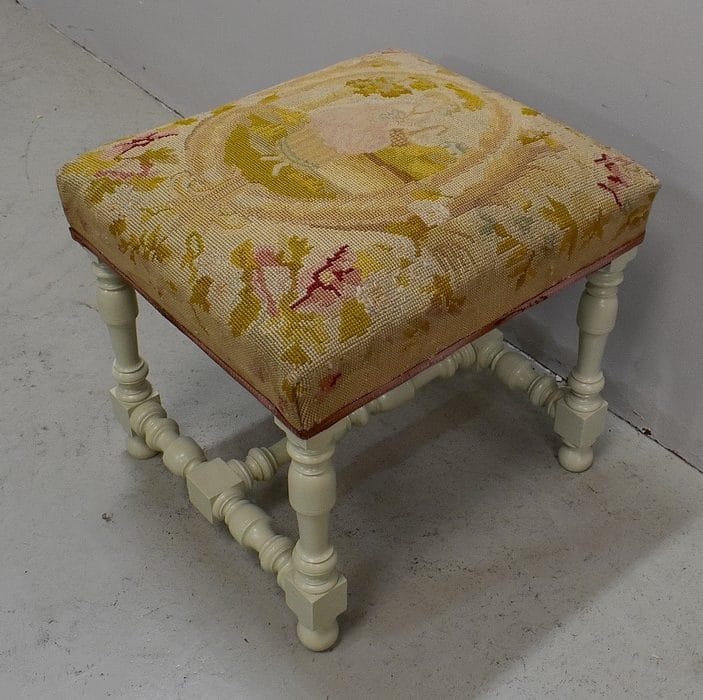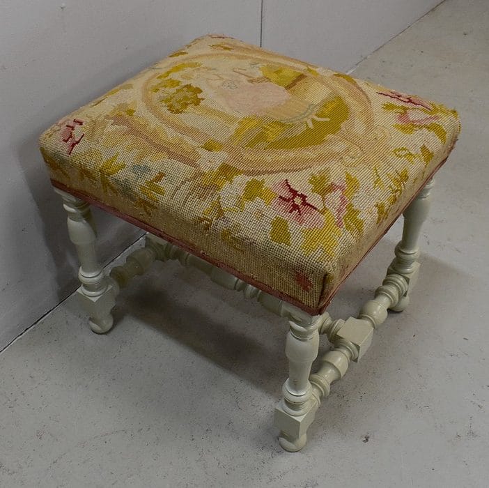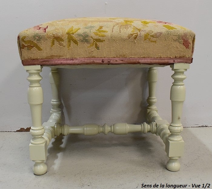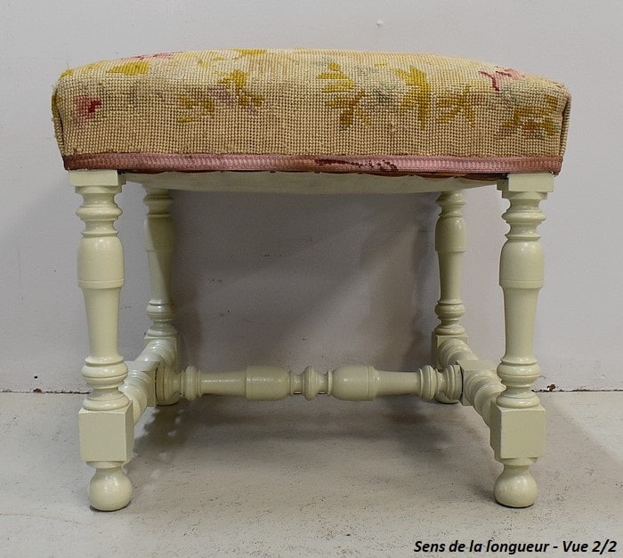 Tabouret en Canevas et Bois Réchampi, goût Louis XIV – Fin XIXe