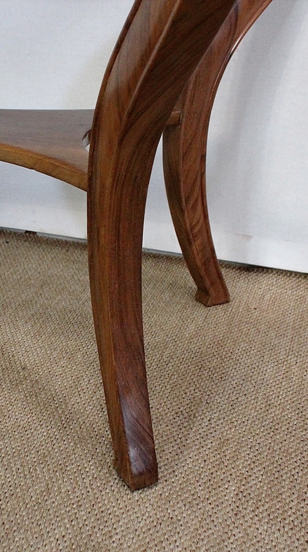 Par ailleurs, une tablette concave relie les quatre pieds au deux tiers du meuble.