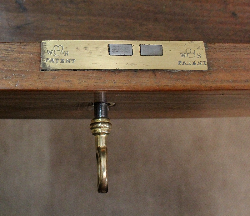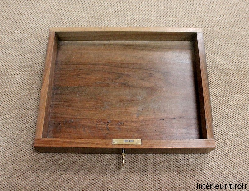 En ceinture, ce petit mobilier possède un grand tiroir muni également d’une serrure brevetée de la marque WR, gage de qualité, en état de fonctionnement.