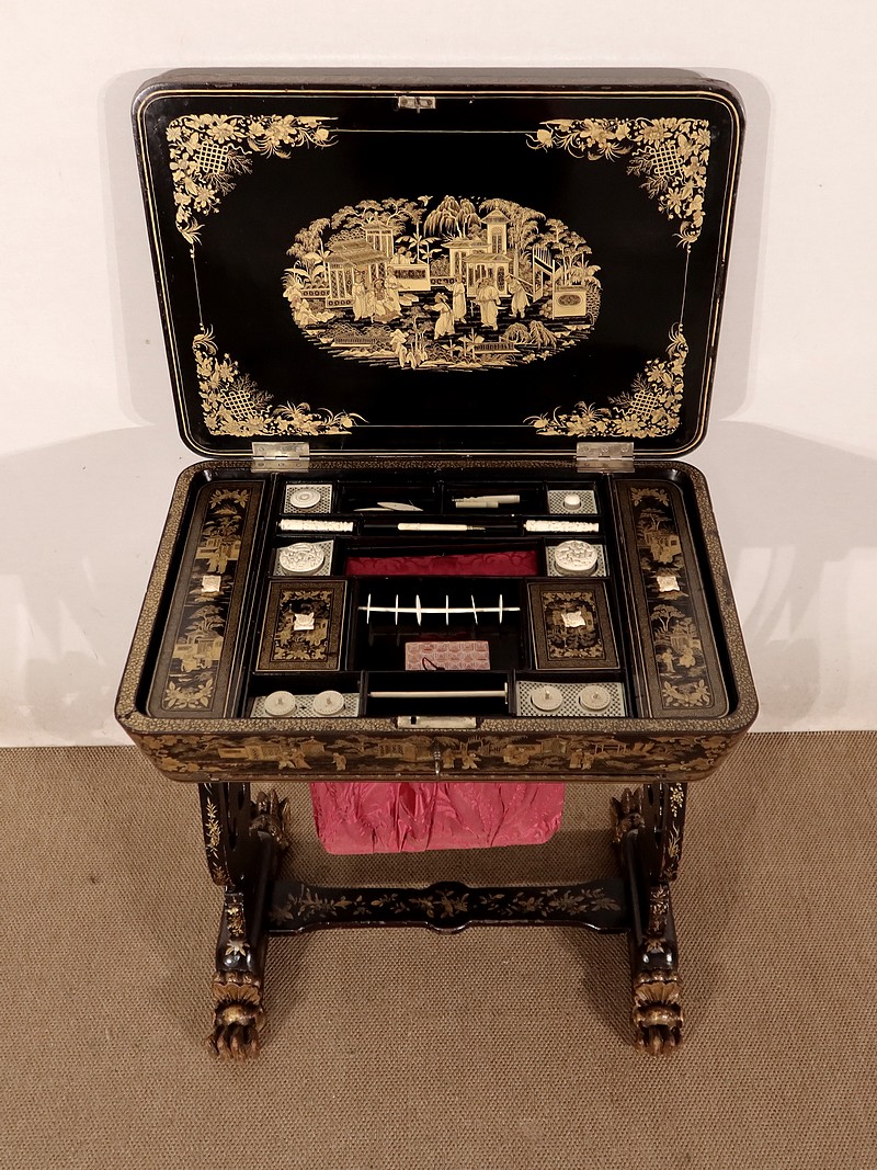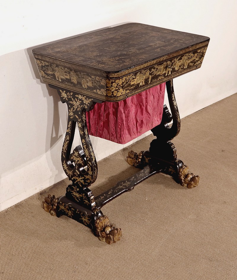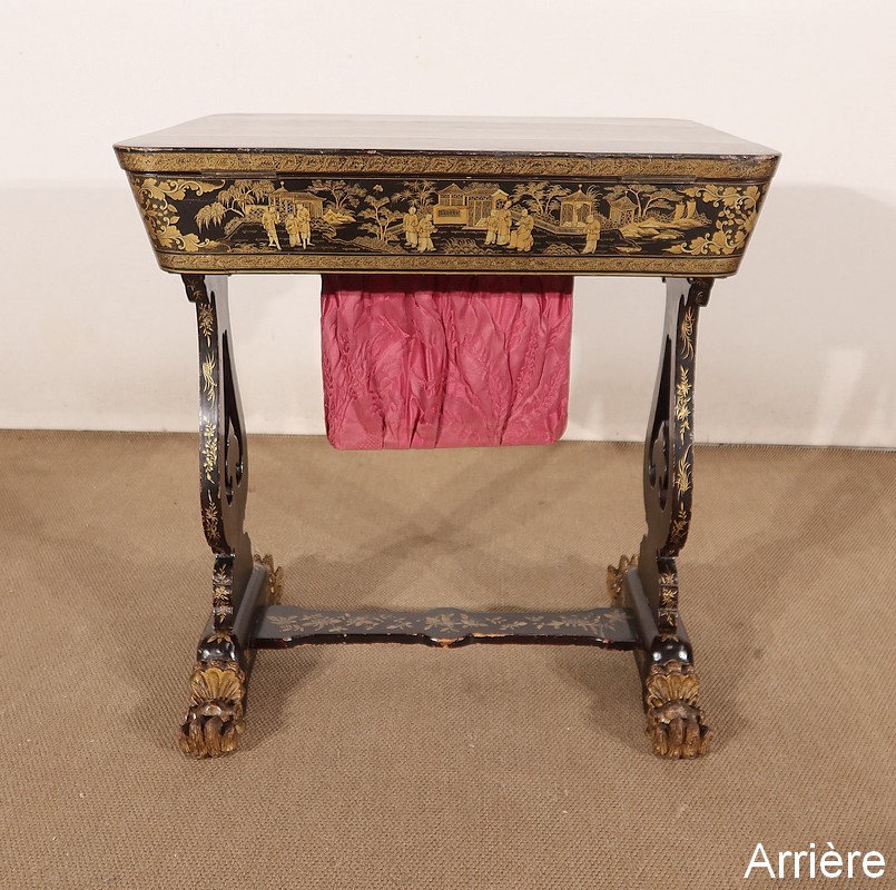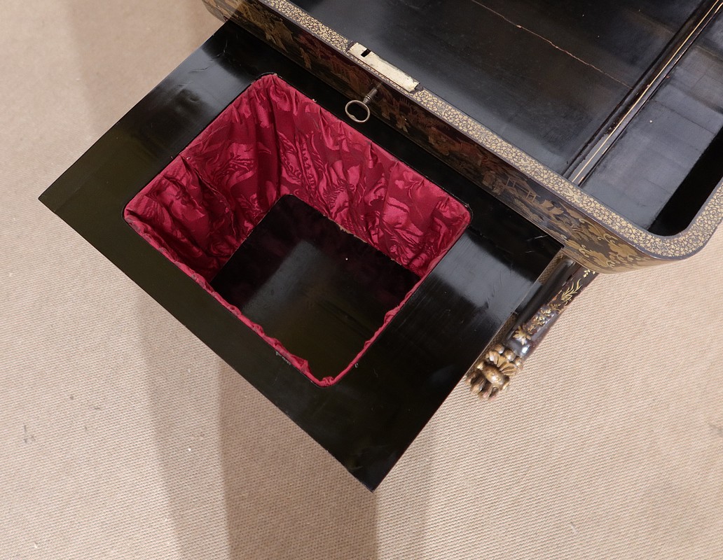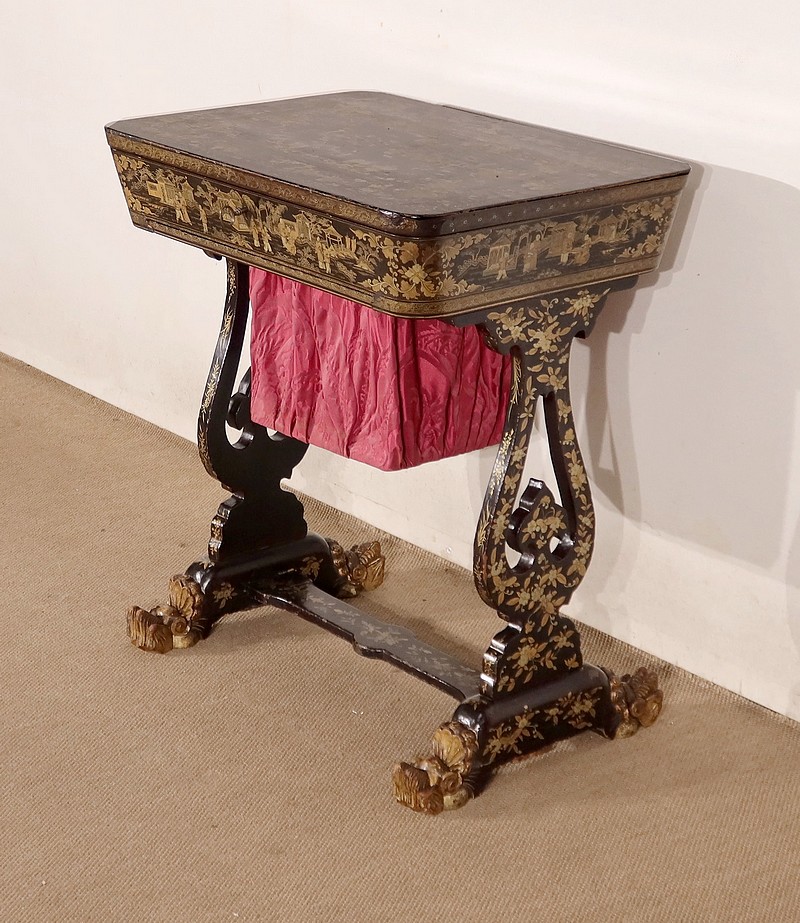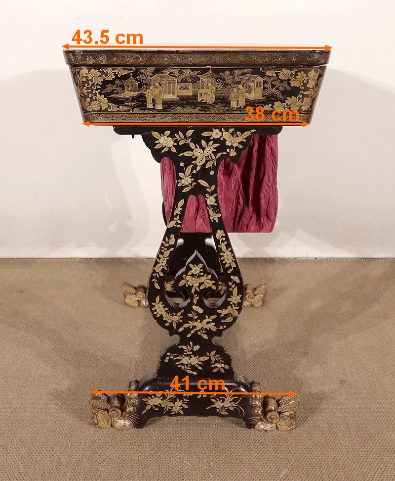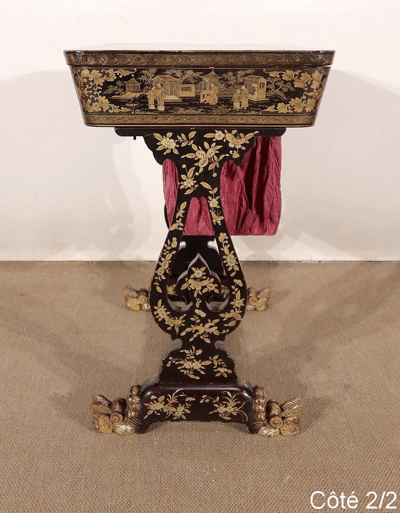Travailleuse en bois noirci à décor asiatique, époque Napoléon III – Milieu XIXe