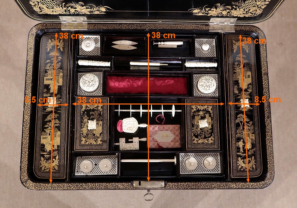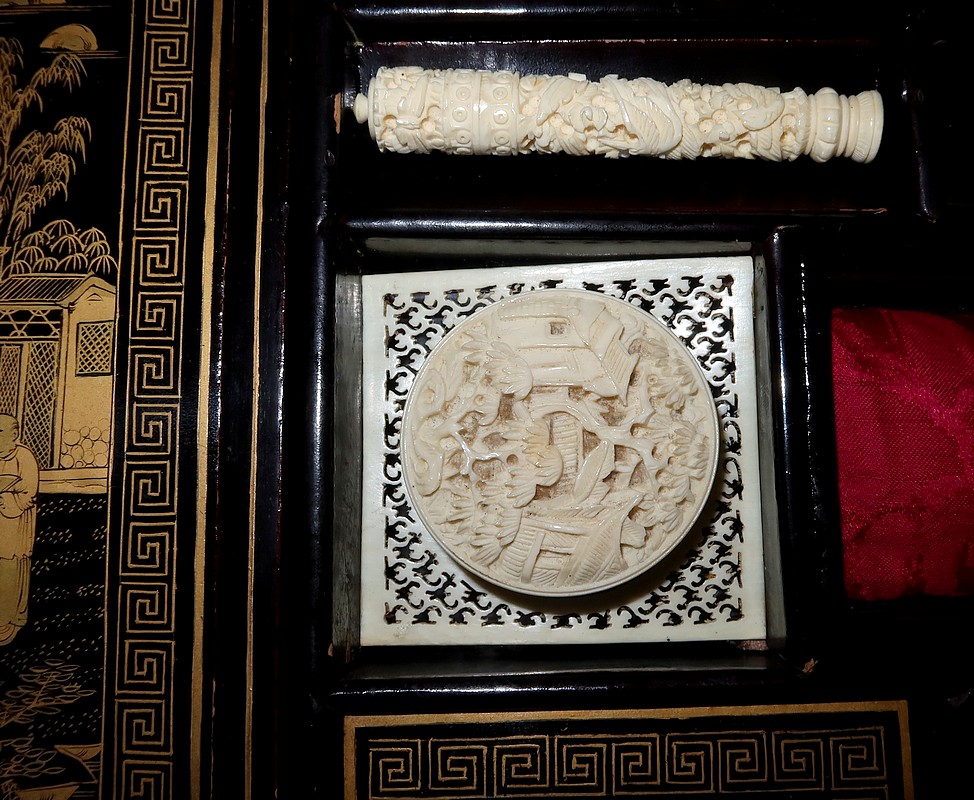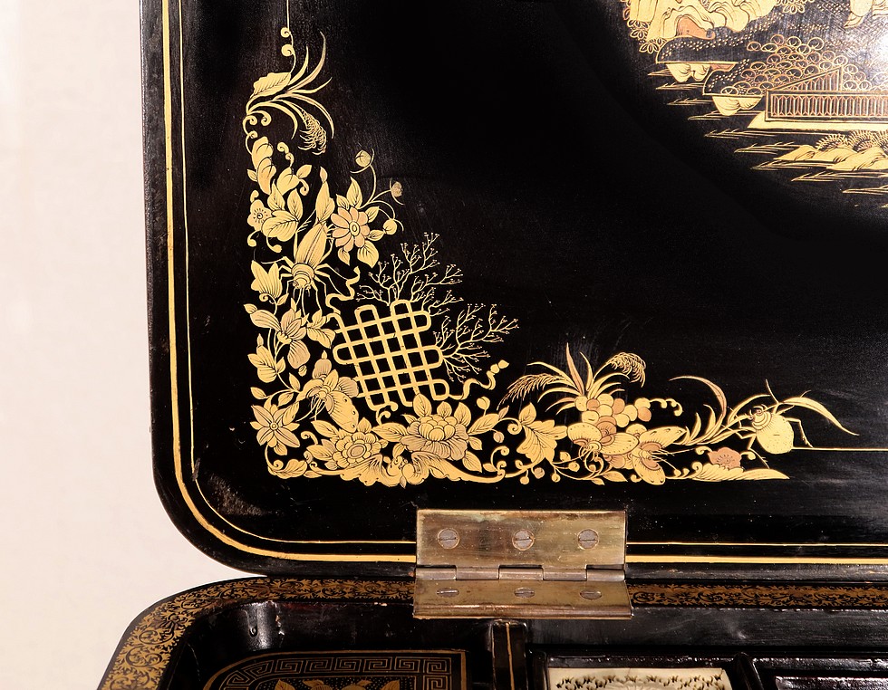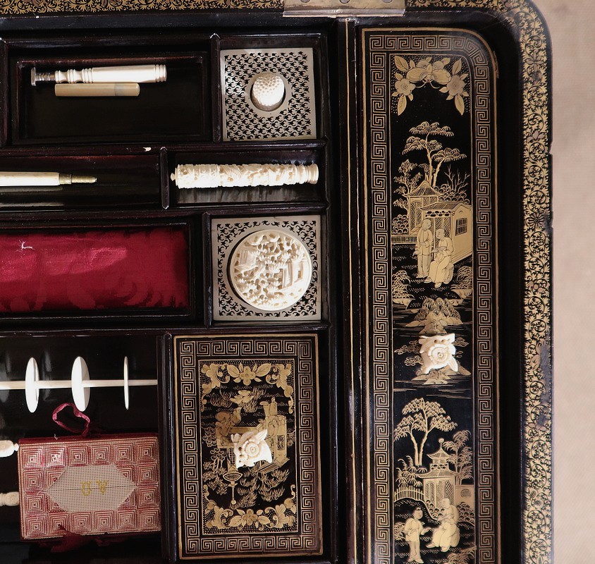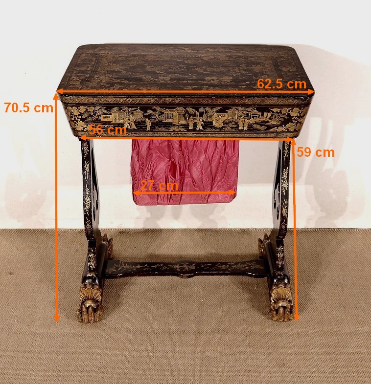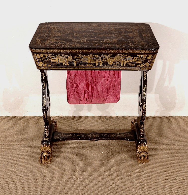 Travailleuse en bois noirci à décor asiatique, époque Napoléon III – Milieu XIXe