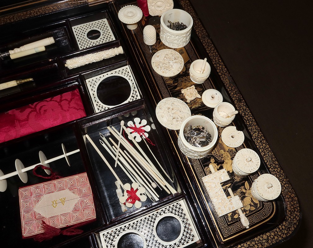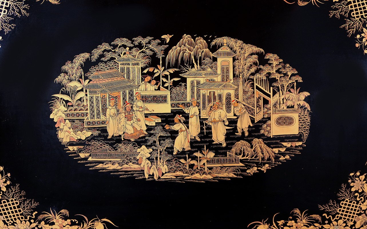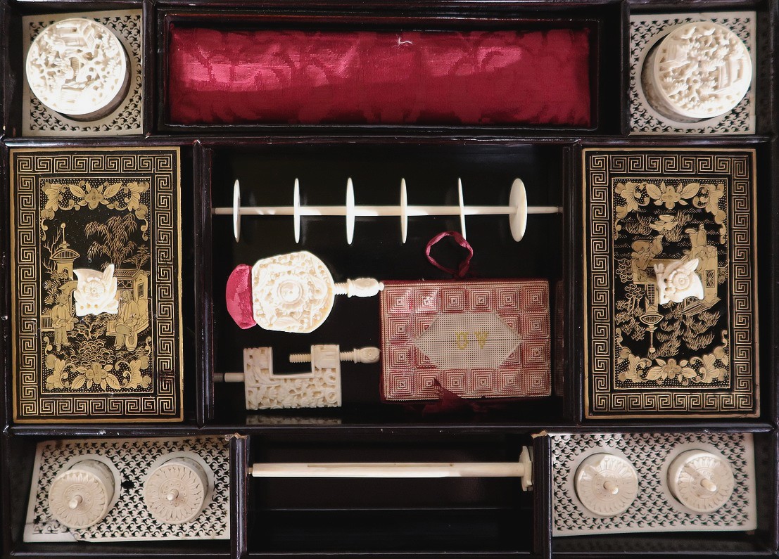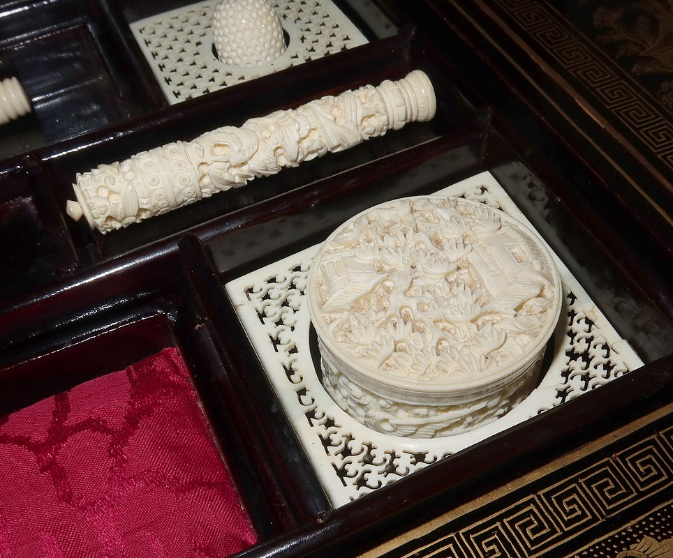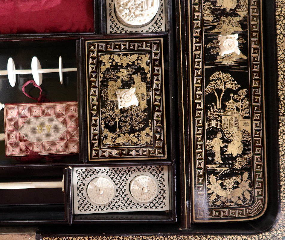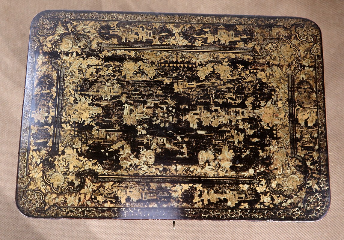 Travailleuse en bois noirci à décor asiatique, époque Napoléon III – Milieu XIXe