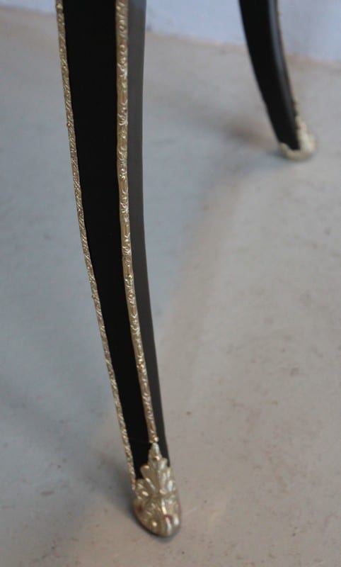 Elle repose sur des pieds galbés ornés de chutes, de galons et de sabots de bronze.