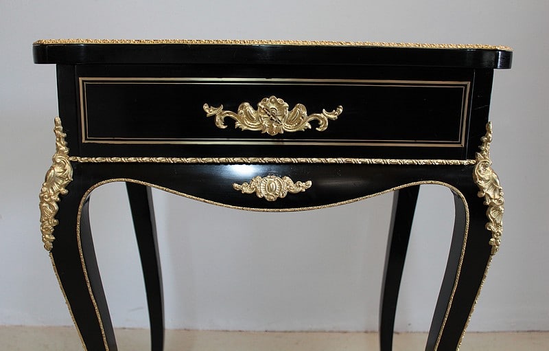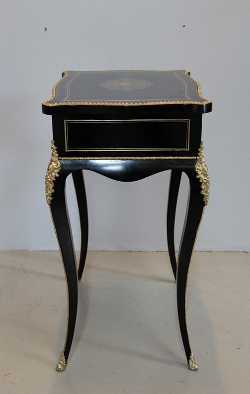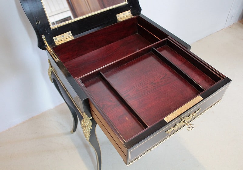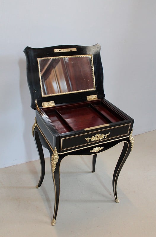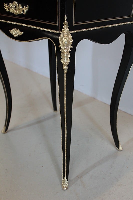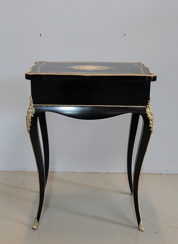 Travailleuse en placage de poirier noirci marqueté de filets de laiton, d’époque NAPOLÉON III.